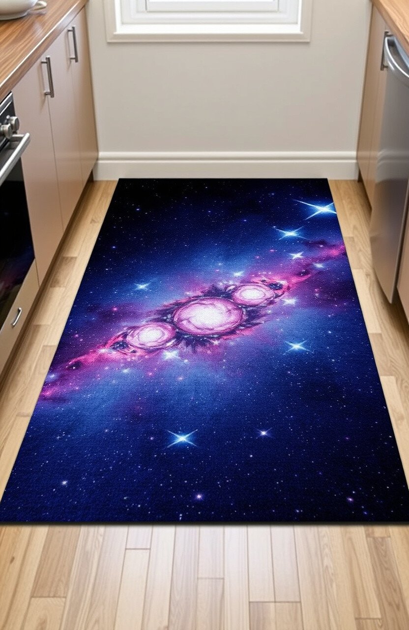 Cosmic carpets can add a touch of wonder. It’s like a journey to the stars in your kitchen.