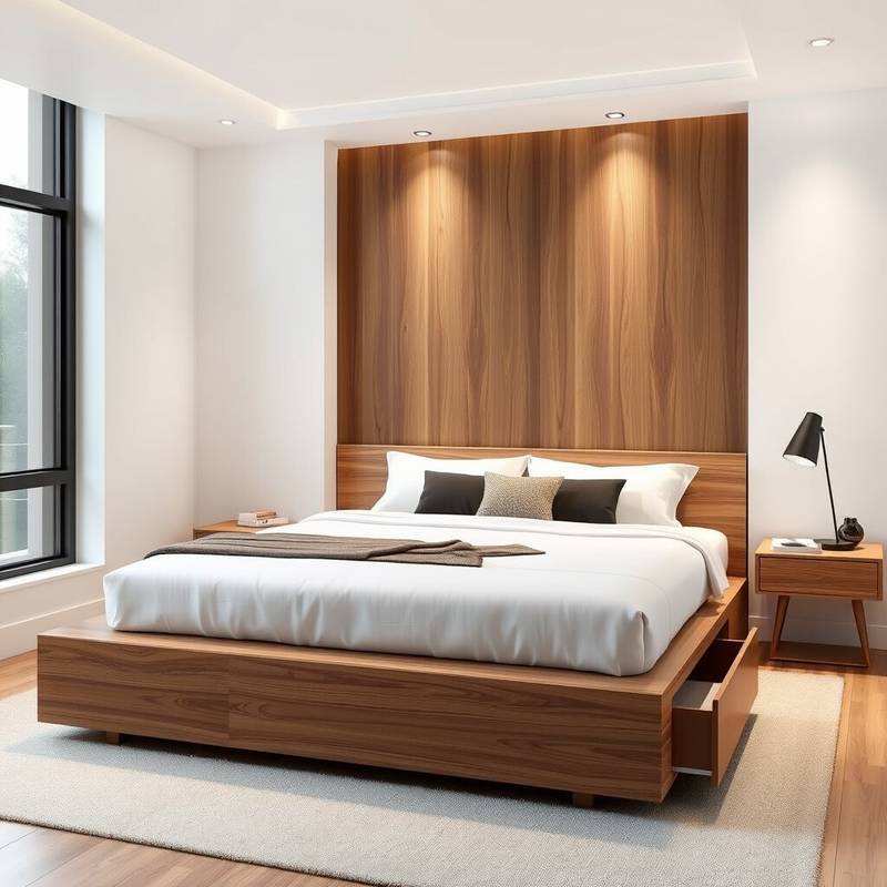 Try placing your mattress on a sleek, low-profile platform. It gives your room a modern look while maximizing space. This style is all about clean lines and simplicity, creating a serene sleeping area.