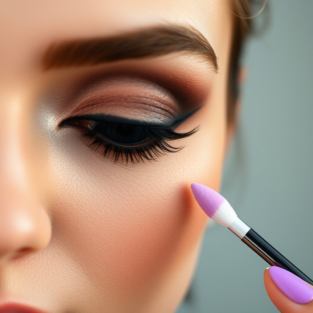 Begin with a light eyeshadow across your entire eyelid. This serves as a foundation for the darker colors you’ll add later. It helps the darker shadows blend more smoothly.
