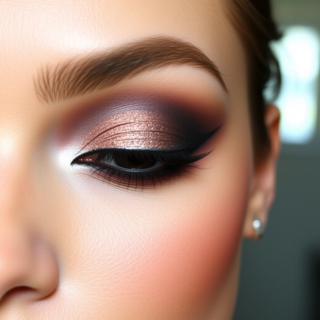 For a bit of glamour, add a shimmery shadow to the center of your eyelid. This catches the light and makes your eyes sparkle. It’s a subtle way to add some extra flair.