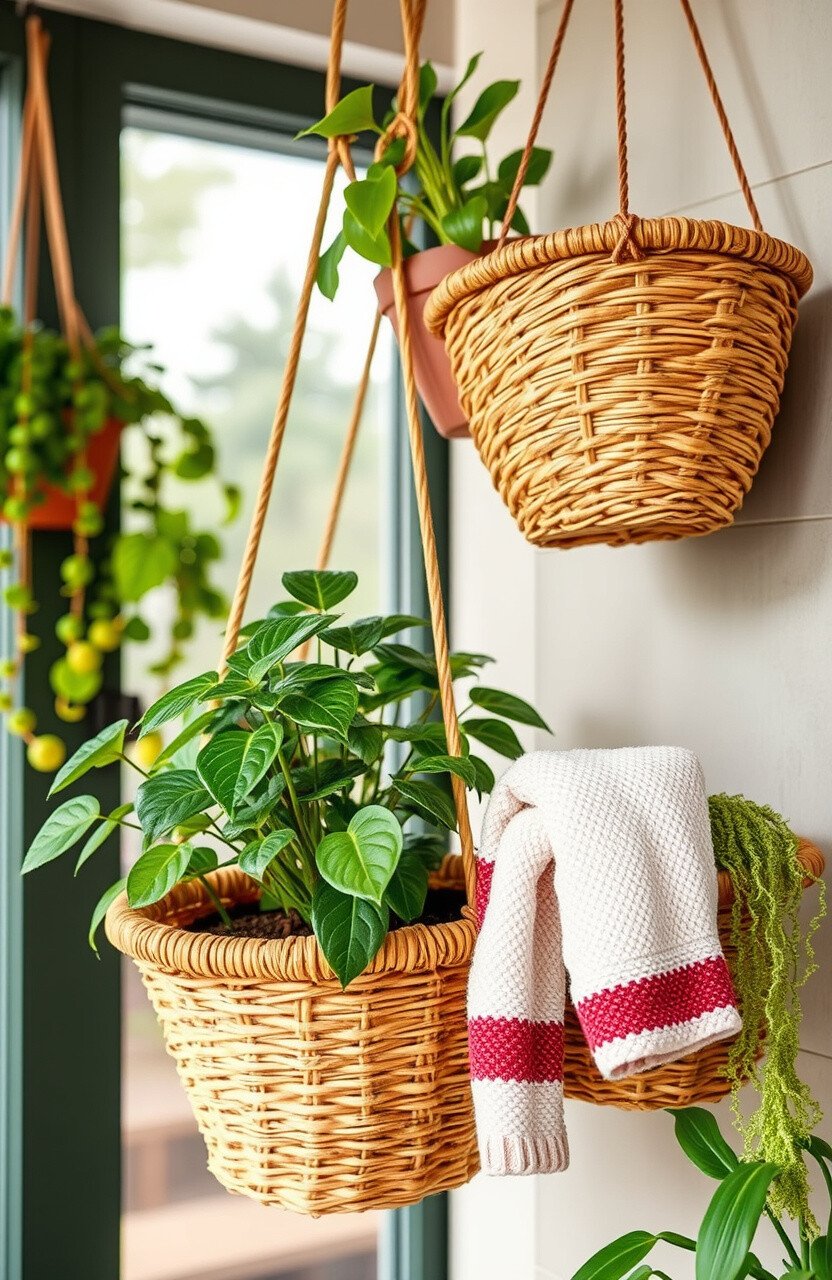 Hanging baskets are perfect for plants, towels, or toys. They save space and add charm.
