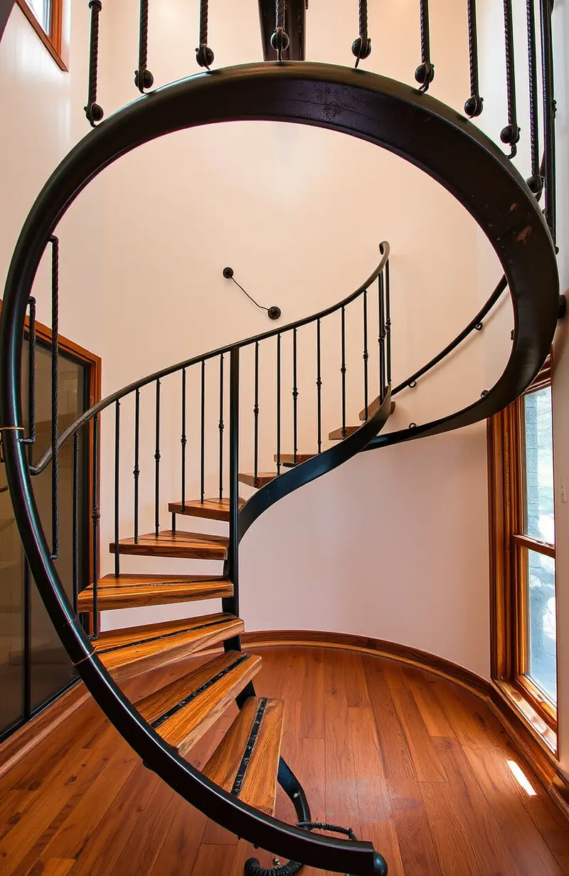 Combine vintage charm with industrial style for a unique spiral staircase. It’s perfect for homes that celebrate the past with a modern twist.
