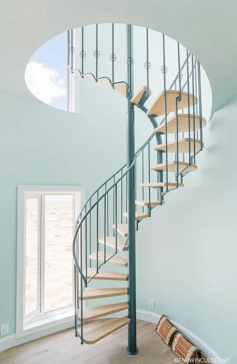Capture the essence of the coast with a spiral staircase that evokes sandy beaches and salty air. It’s perfect for beach-front homes or coastal interiors.