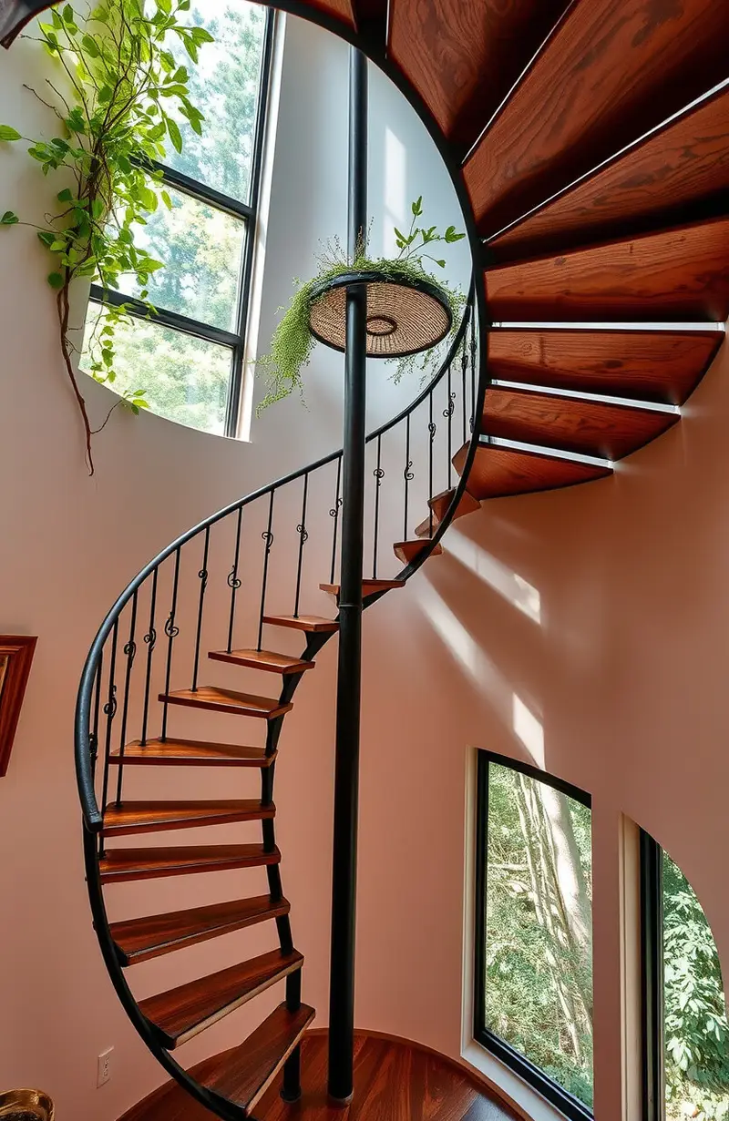 Integrate nature into your home with a spiral staircase that incorporates greenery. It’s perfect for plant lovers who want to bring the outdoors in.
