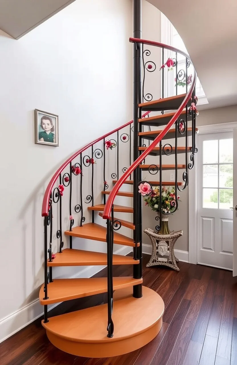 Bring back the glamour of the 1920s with a spiral staircase designed with Art Deco elements. Think geometric patterns and bold shapes.