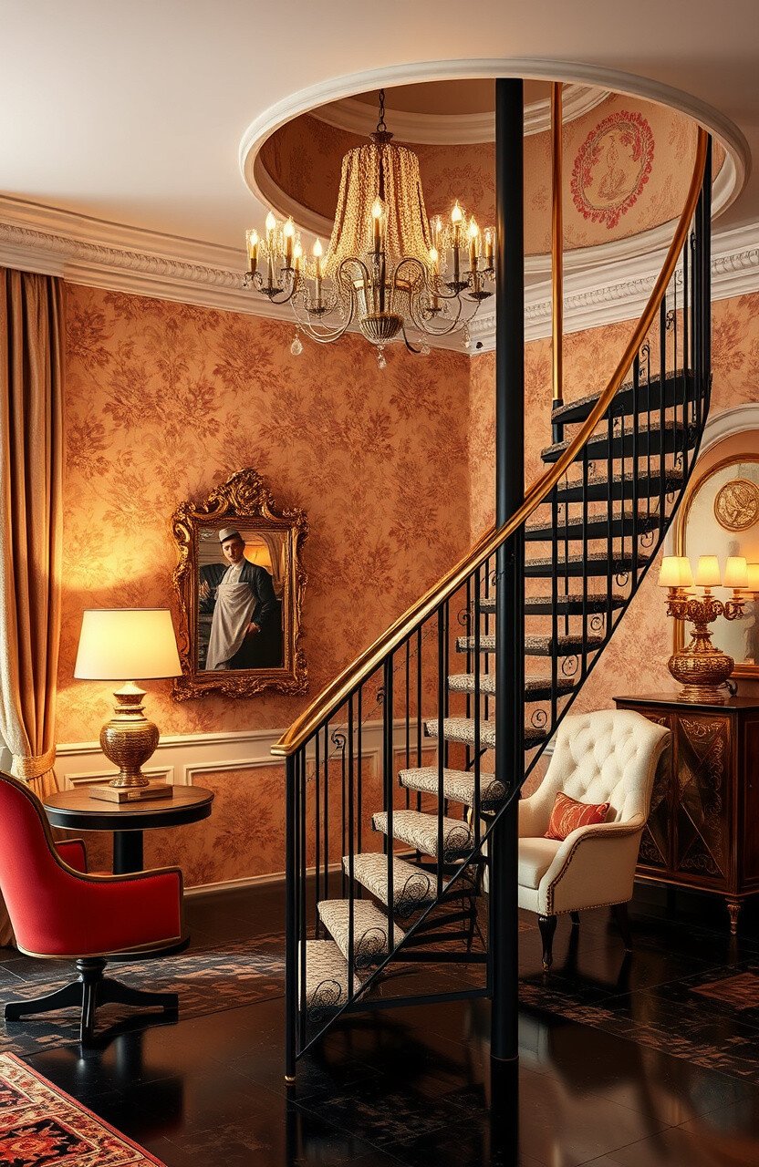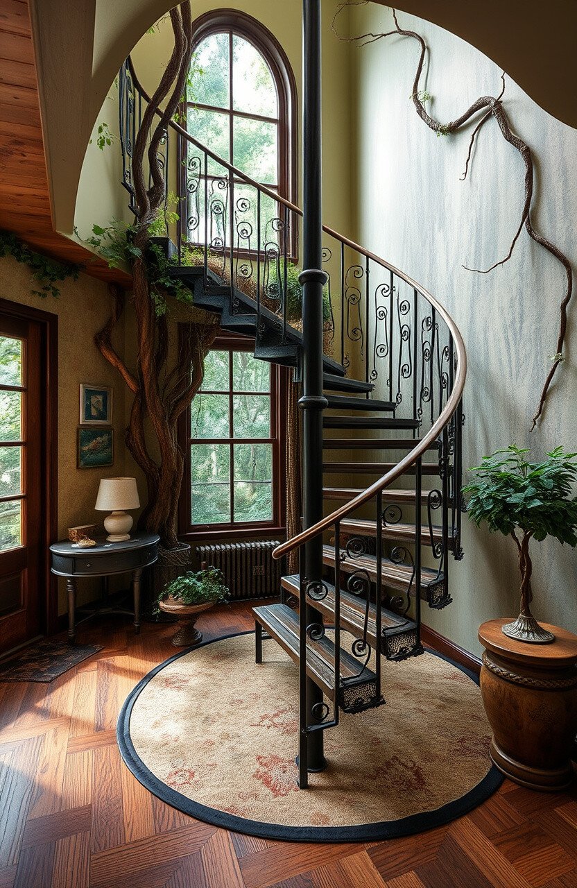 A Victorian-inspired spiral staircase brings history to life. Intricate designs and ornate details are key.