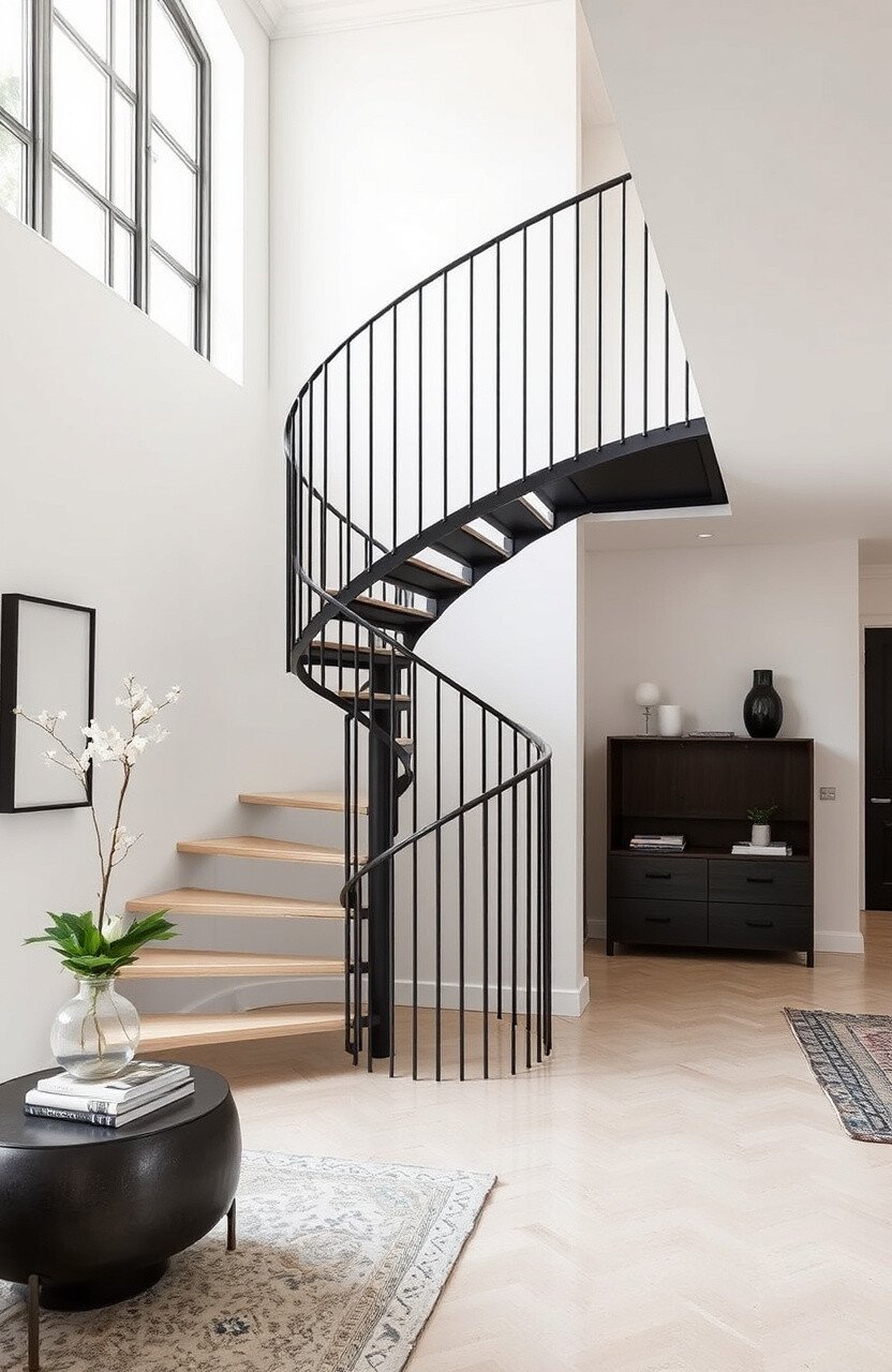 Minimalist designs focus on clean lines and simplicity. A metal spiral staircase can be a striking minimalist feature.
