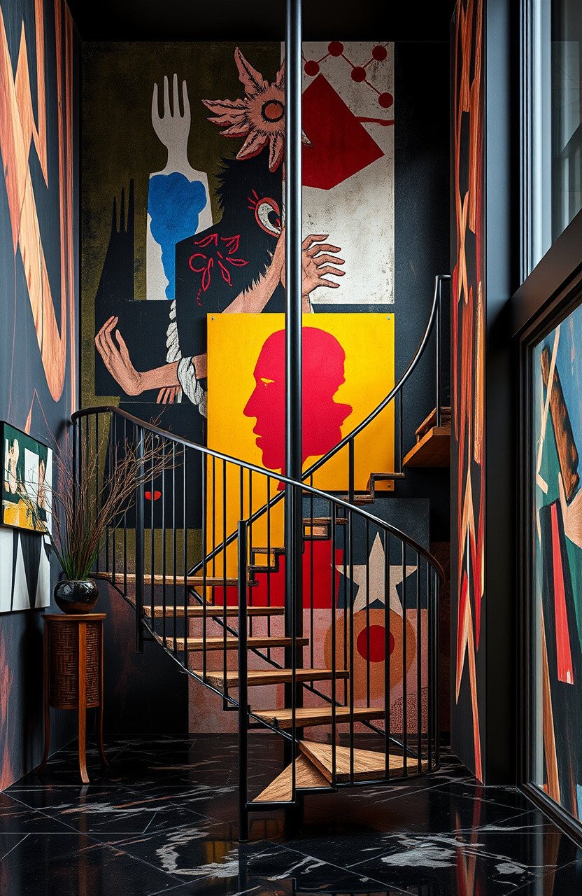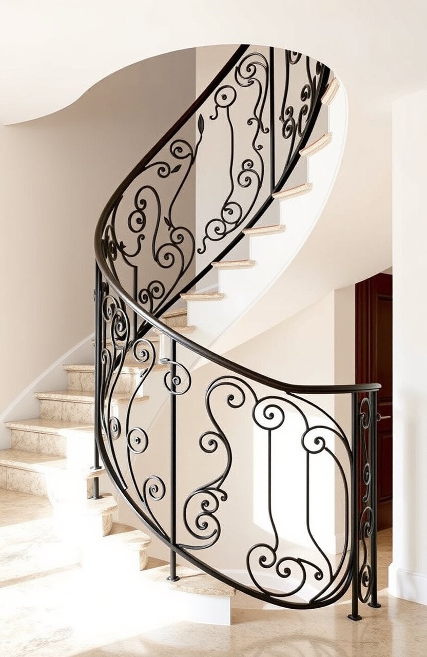 Accessorize with metallic railings for a chic look. Consider adding a soft rug at the base for warmth and contrast.