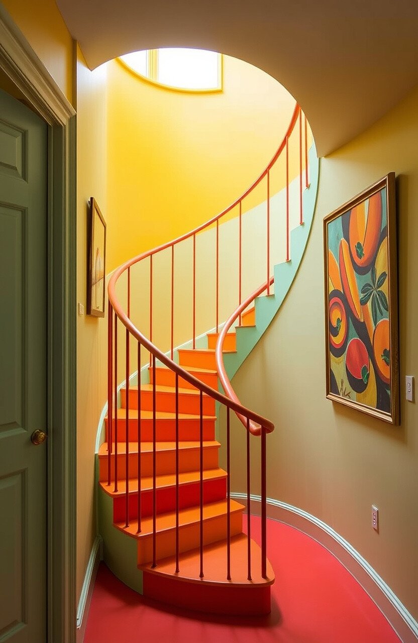 Make a statement with a bold, bright staircase. Think vibrant colors that energize the space.