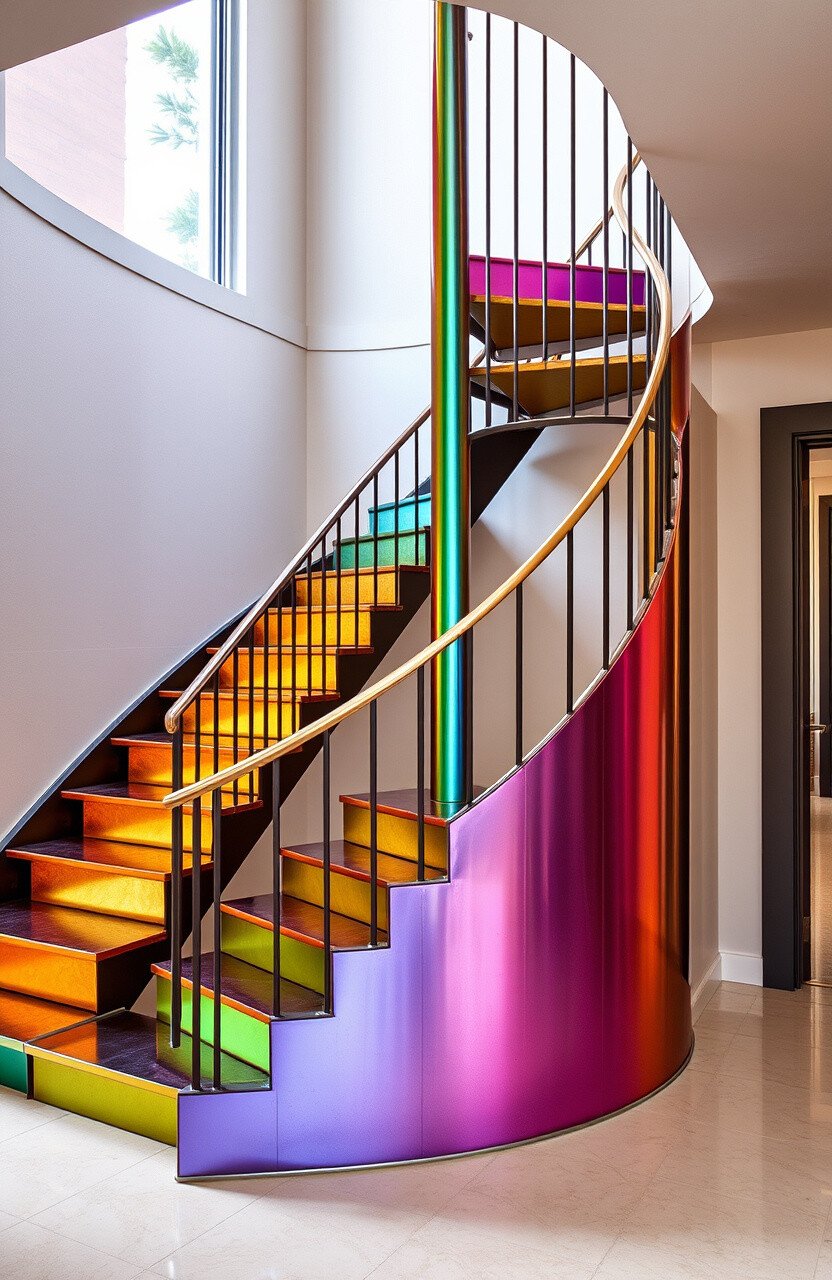 Turn your staircase into a rainbow of metallic hues. It’s bold and eye-catching.