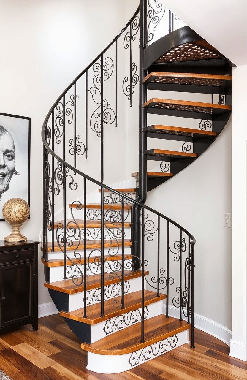 Incorporate custom metalwork into your staircase. It’s a unique and artistic design choice.