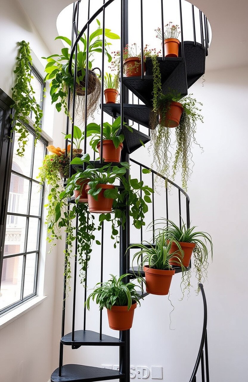 Experiment with different plant arrangements. Your staircase will become a lush, green oasis.