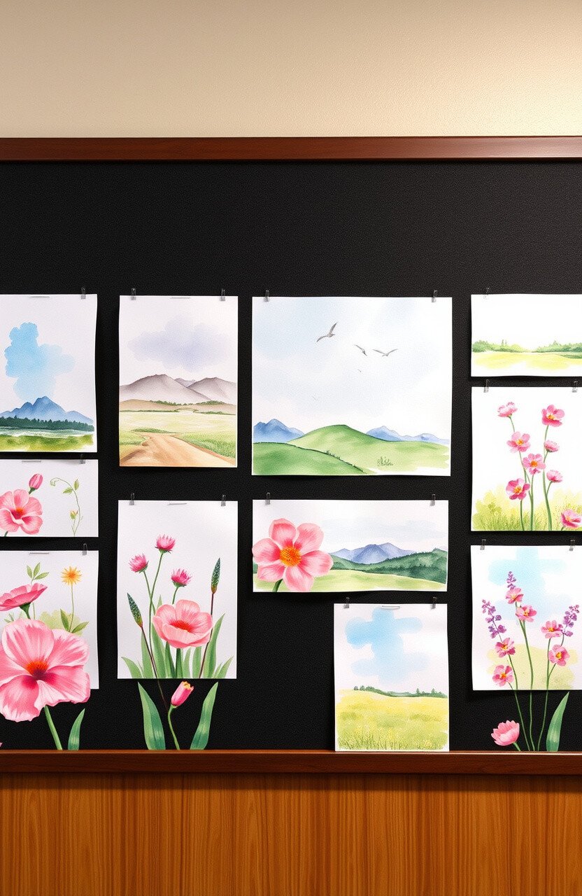Paint watercolor scenes on paper and display them. It’s like having an art gallery on your board!