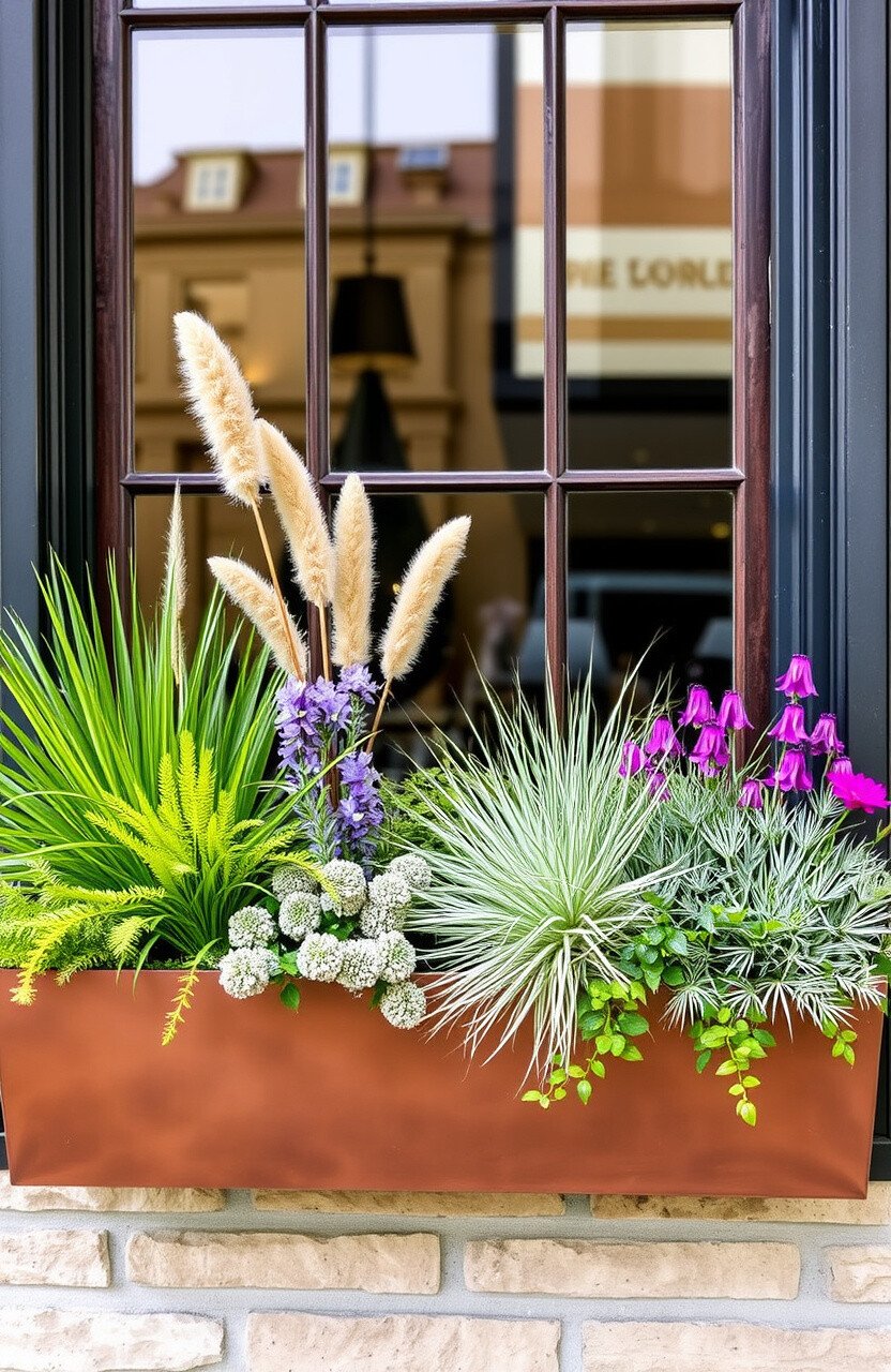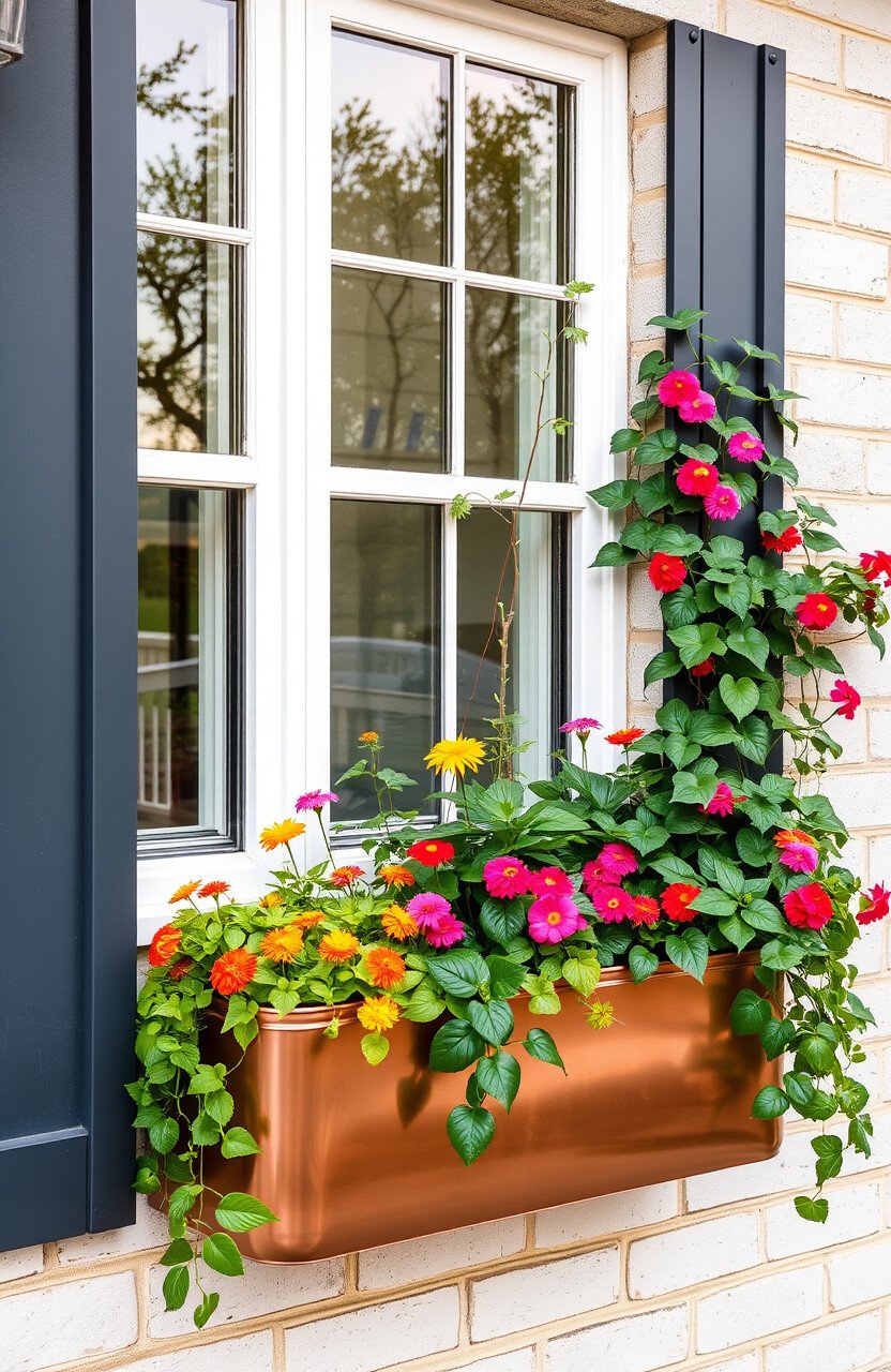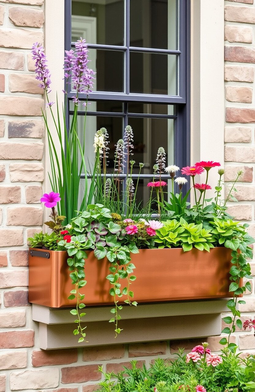 Use contrasting colors to make your window box stand out. Copper works well with both cool and warm tones, offering versatility.