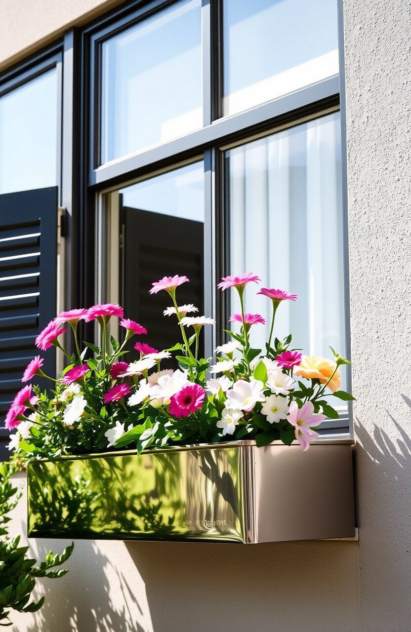 If you’re looking for something bold and eye-catching, chrome window boxes are a fantastic choice. Their mirrored surface reflects light and color, creating a dazzling effect.