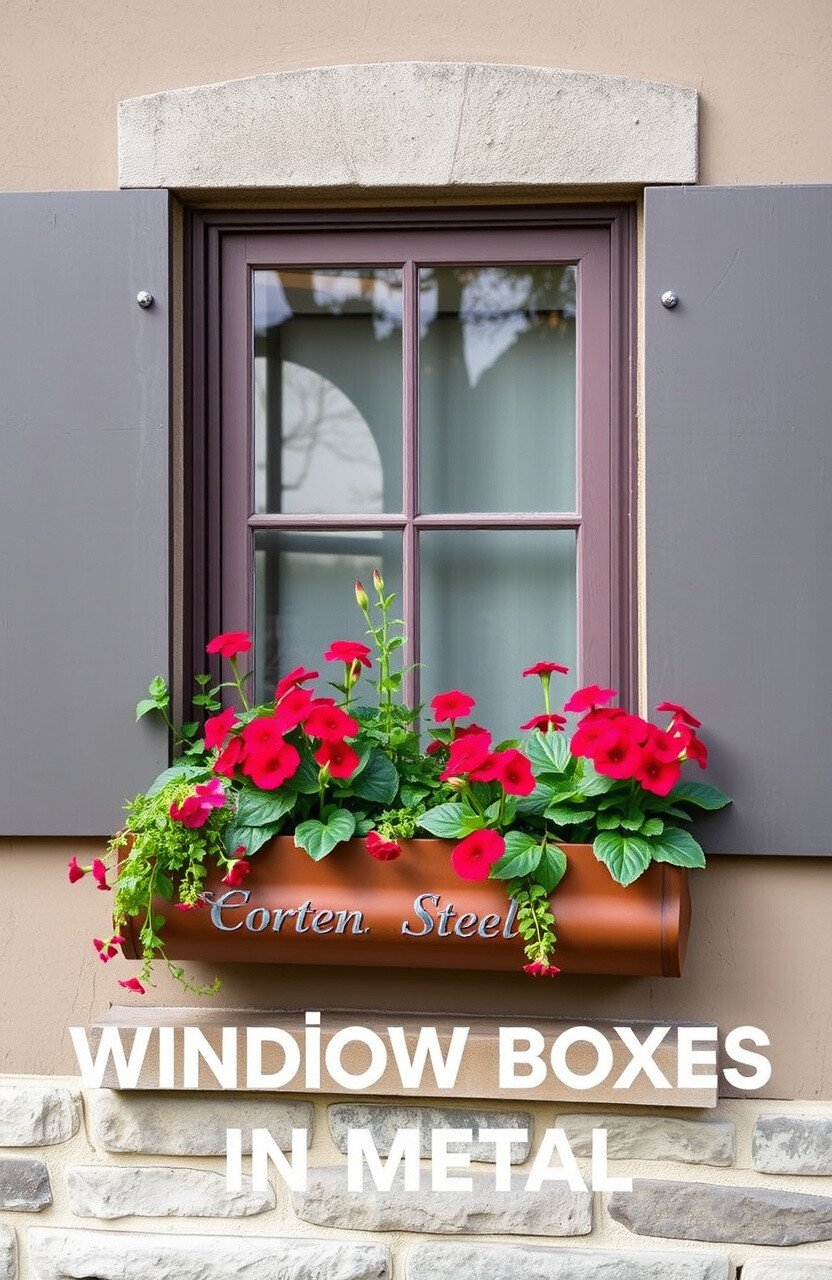 For a unique, weathered look, corten steel window boxes are a fantastic choice. They start as a steel gray and develop a rust-like appearance over time, without actually corroding. This type of metal adds warmth and character.