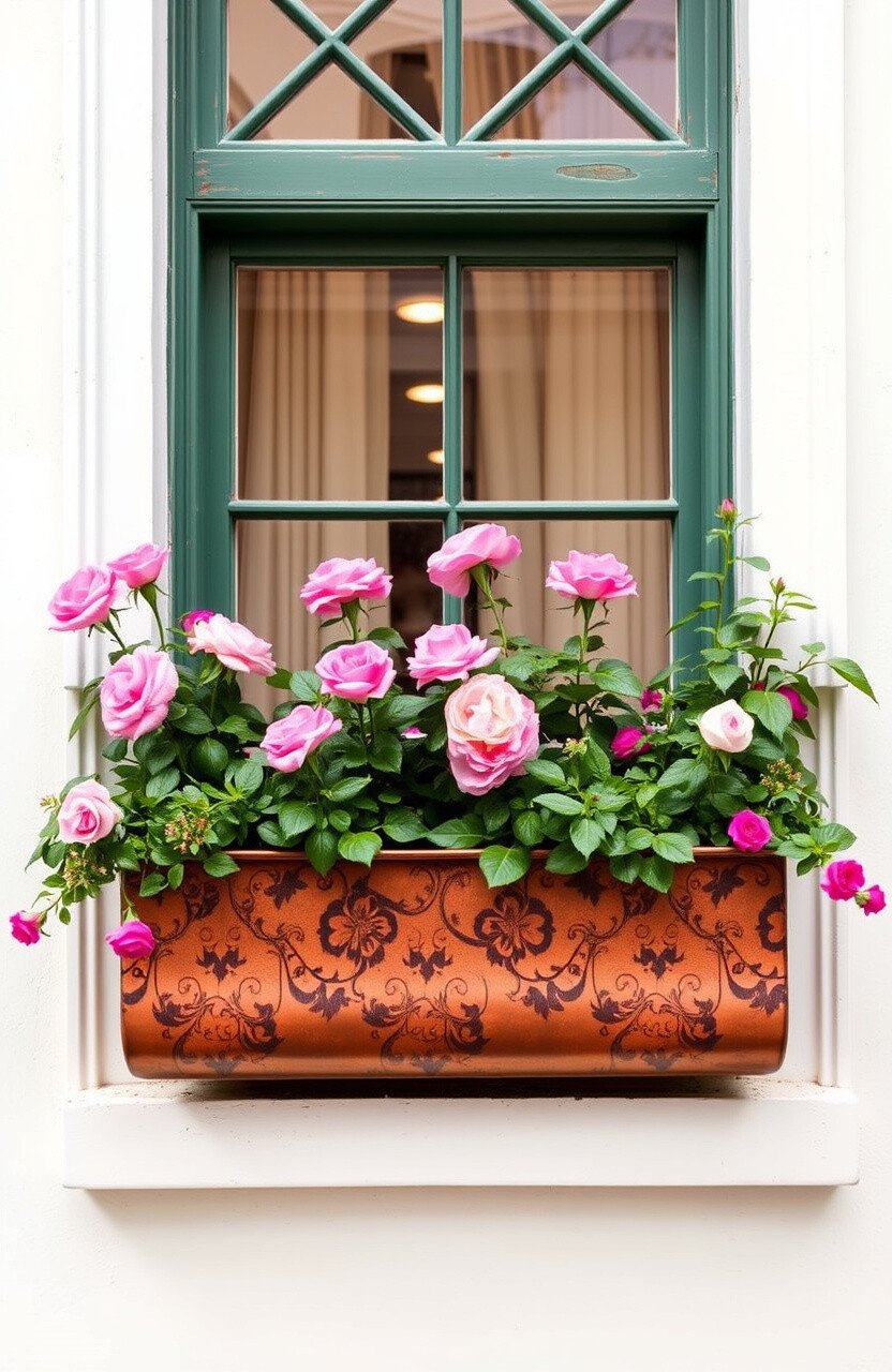 For a modern twist, try a window box with geometric patterns etched into the copper. It’s sleek and stylish.