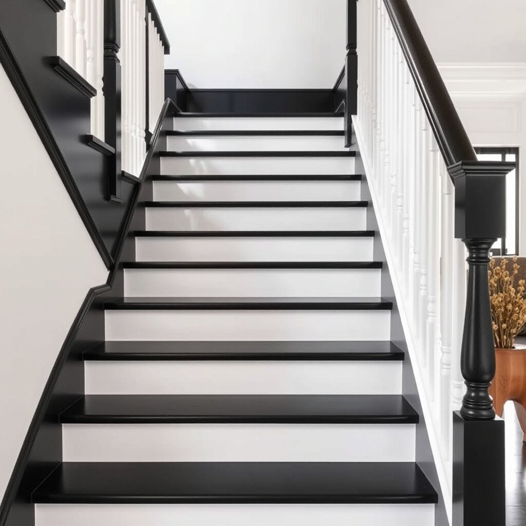 Create a dramatic look with a black and white color scheme. Paint the risers and treads in contrasting colors for a striking effect.