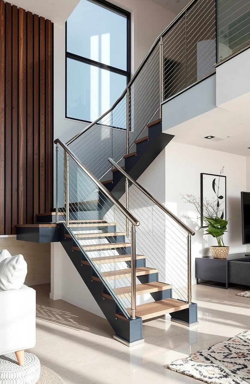 Combining glass railings with cable accents results in a striking contrast. It’s industrial yet elegant.