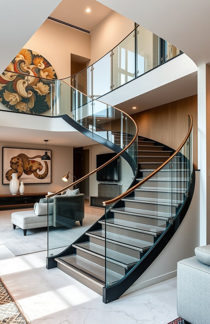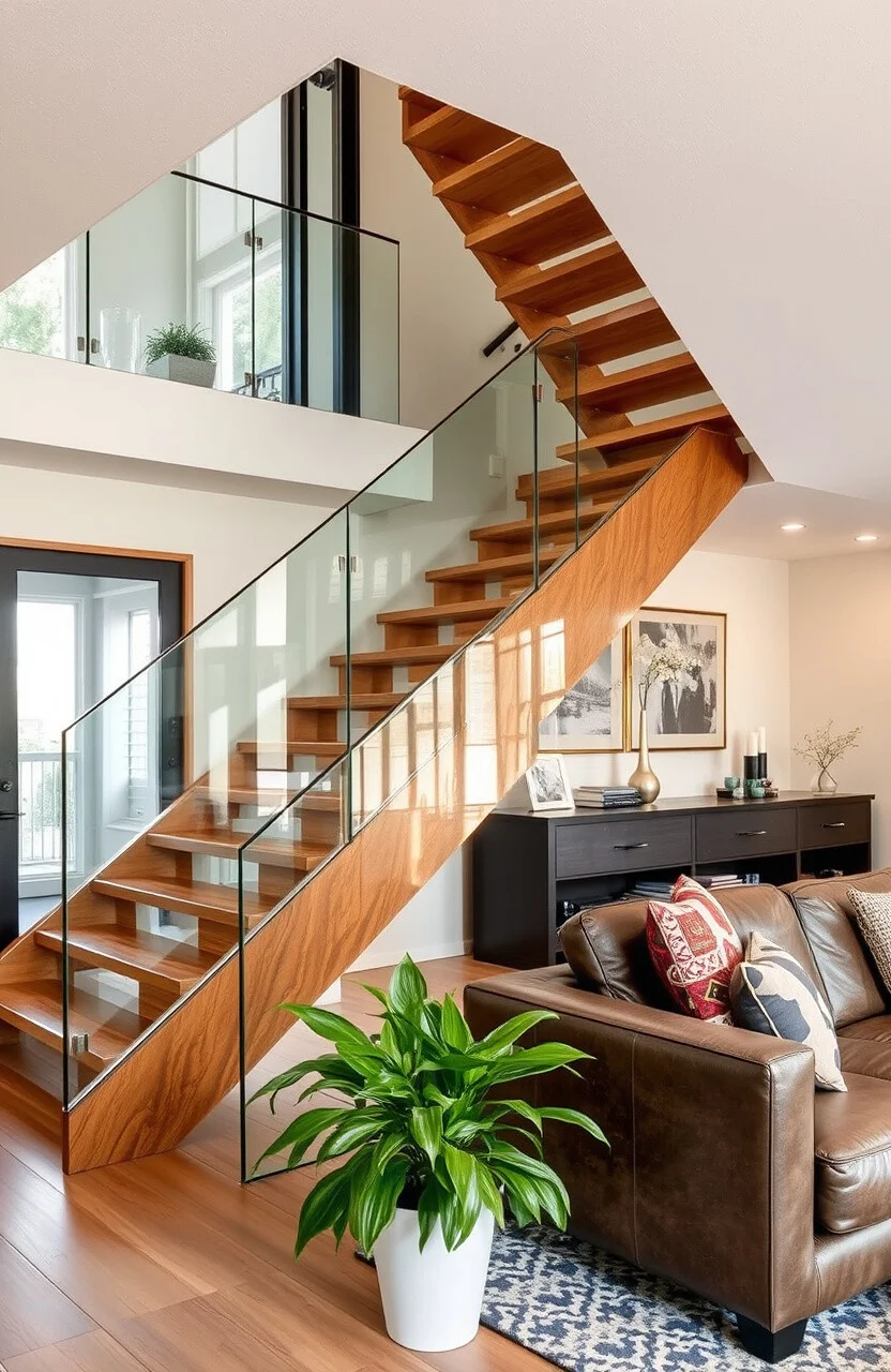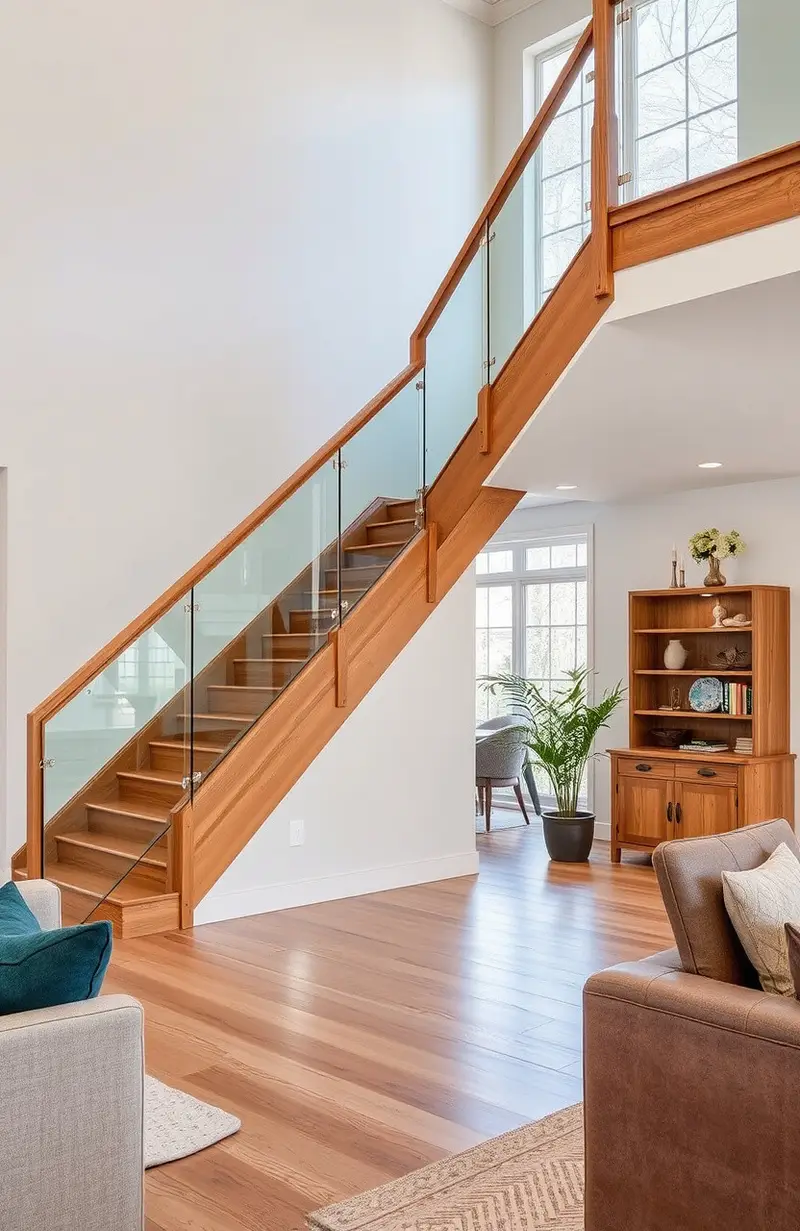 Imagine a staircase that seems to float in your living room. Minimalist glass railings can give this effect with clean lines and no visible hardware.