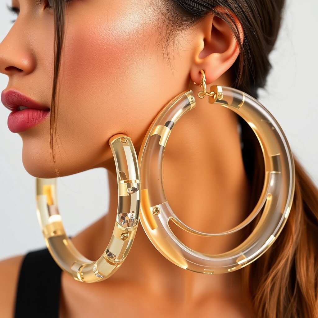 These earrings can make even a simple t-shirt look chic. They come in various materials, from gold to acrylic, each adding a different vibe. Want to look trendy? Pair them with a sleek high ponytail.