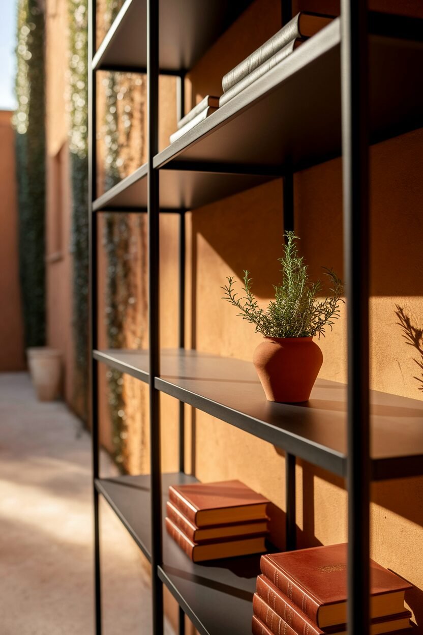 Steel shelves provide both form and function, offering a modern look with ample storage. They’re perfect for showcasing your favorite books or decor items.
