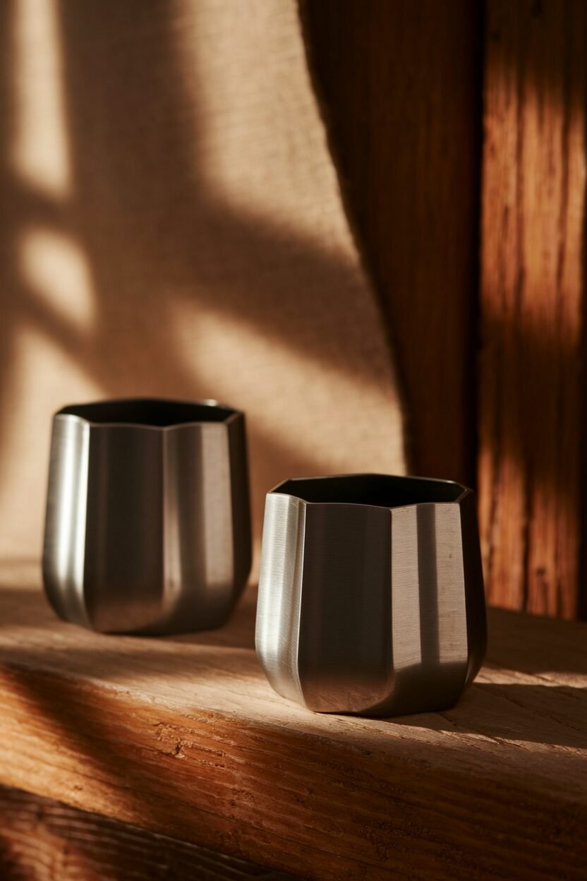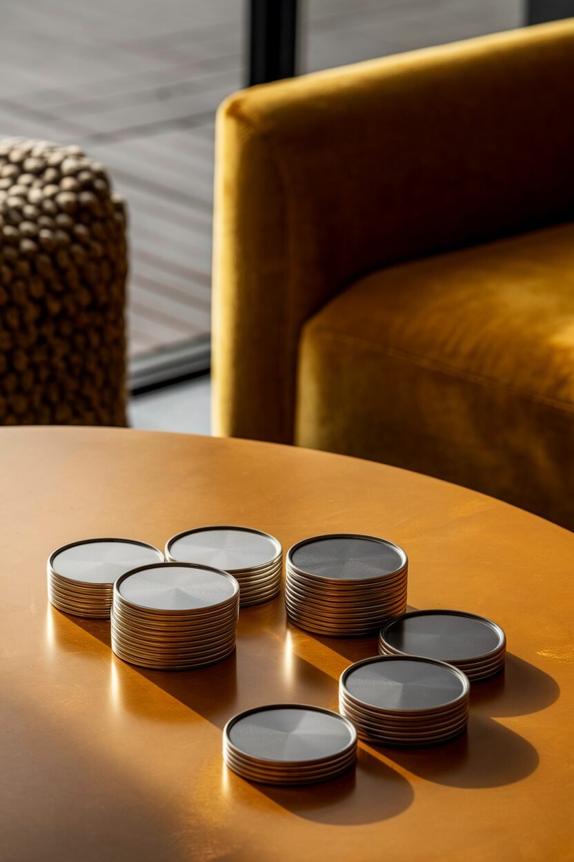 Steel coasters are not just practical, they’re stylish too. They keep your surfaces safe from spills and add a metallic touch to your decor.