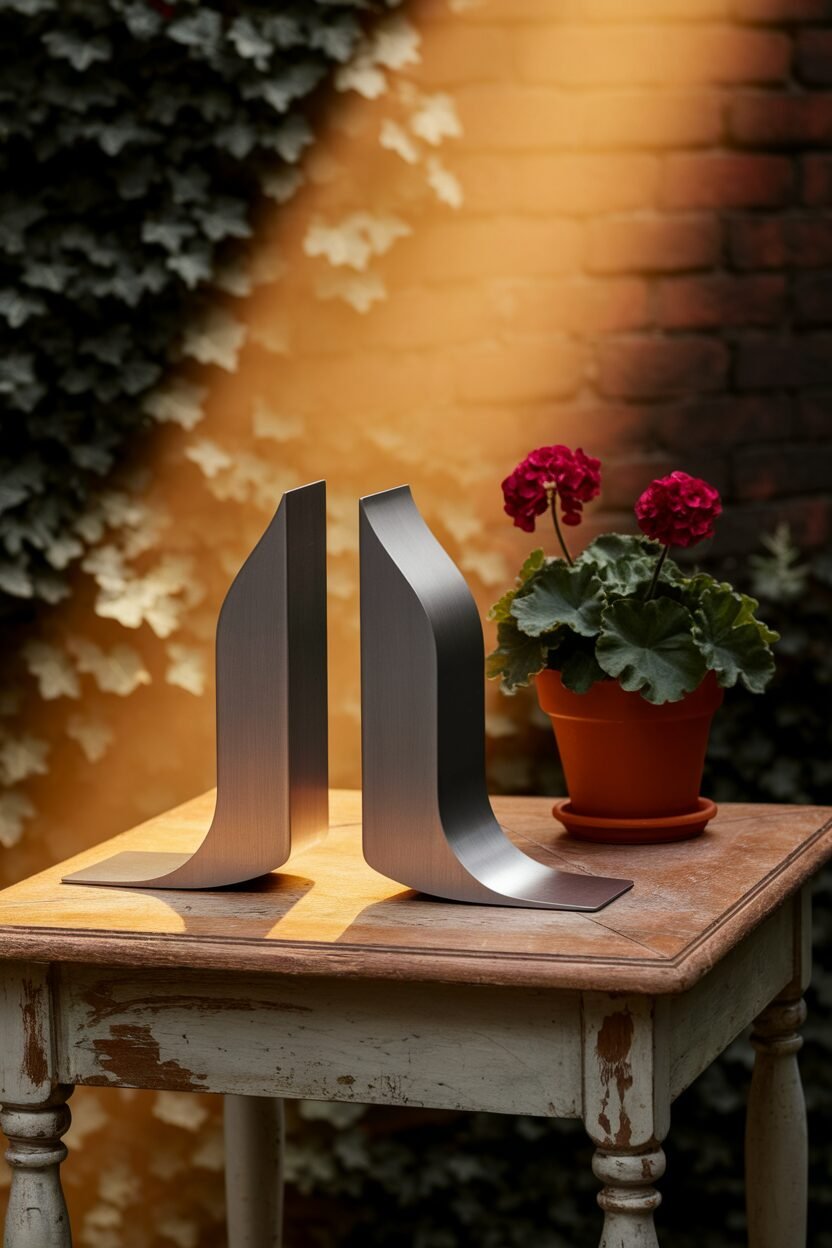 Organize your books in style with steel bookends. They’re not just functional but also a modern addition to your shelves.