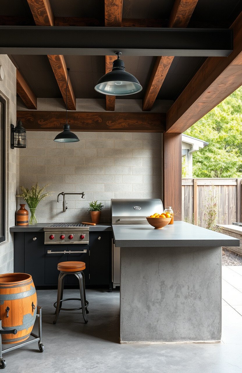 Bring a touch of the city to your backyard with an industrial-themed kitchen. Think exposed beams and metal fixtures.