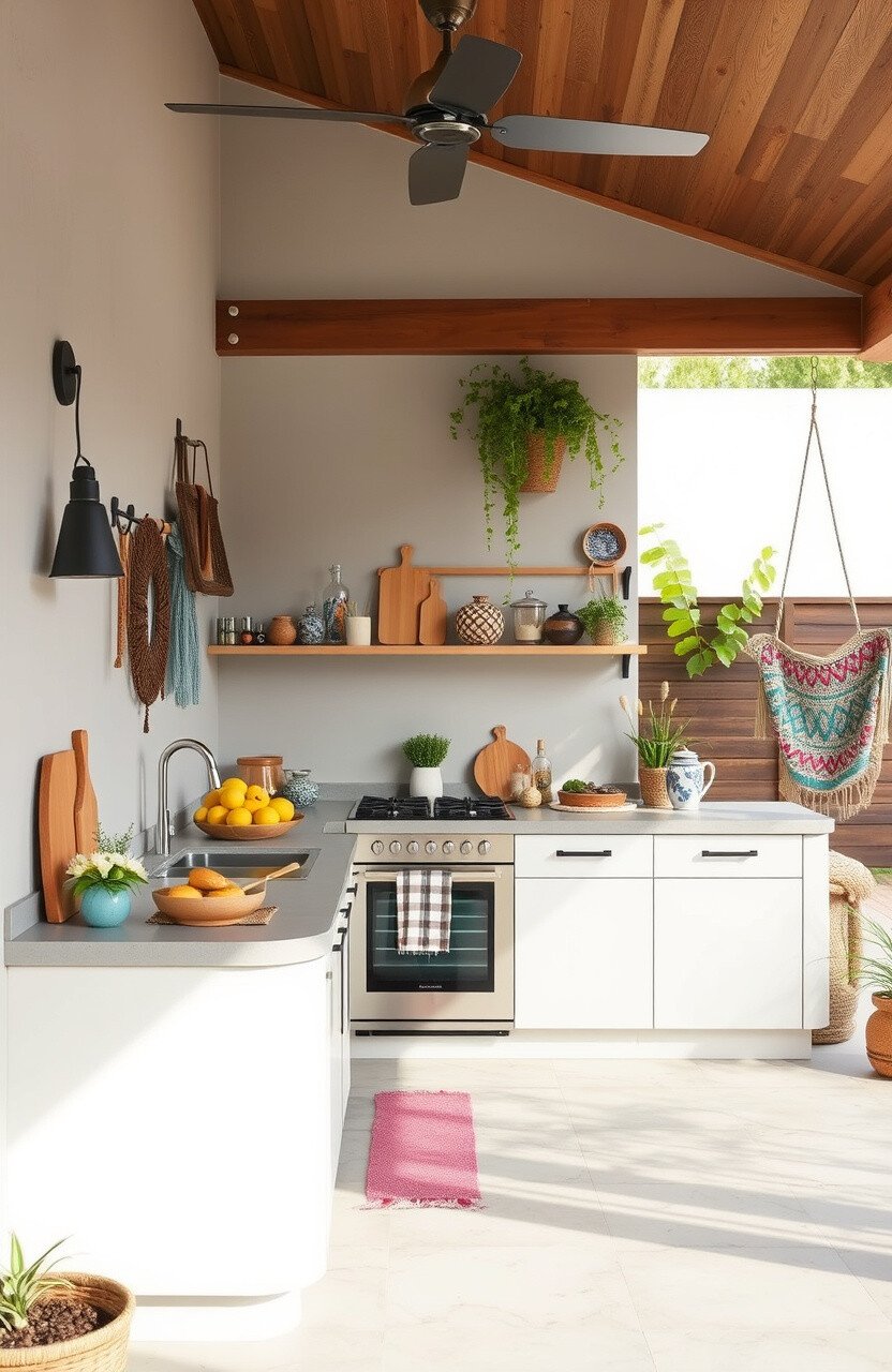 Create a free-spirited atmosphere with a bohemian kitchen. Concrete counters with a matte finish can add to the laid-back vibe.
