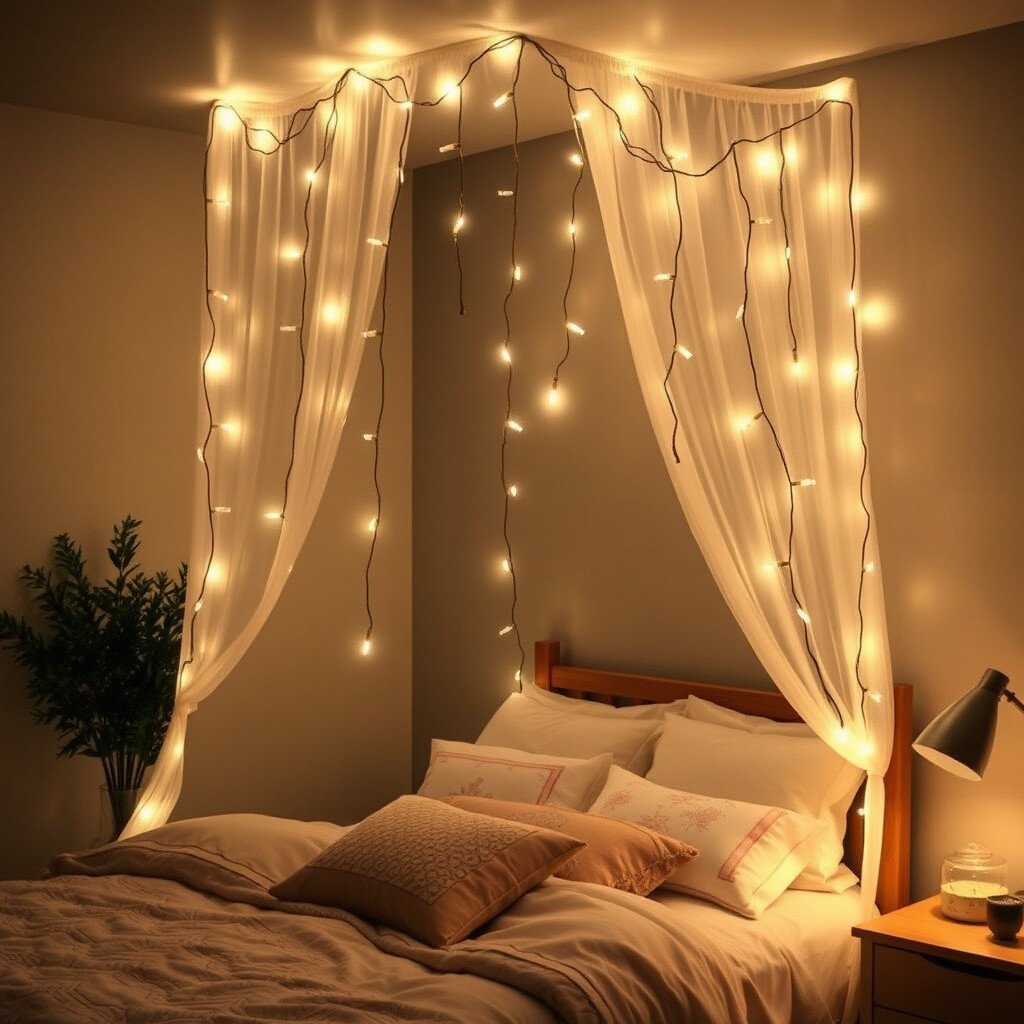 This idea is perfect for those who love a bit of whimsy. Use sheer fabric alongside the lights for an extra magical touch. It’s like sleeping under the stars every night!