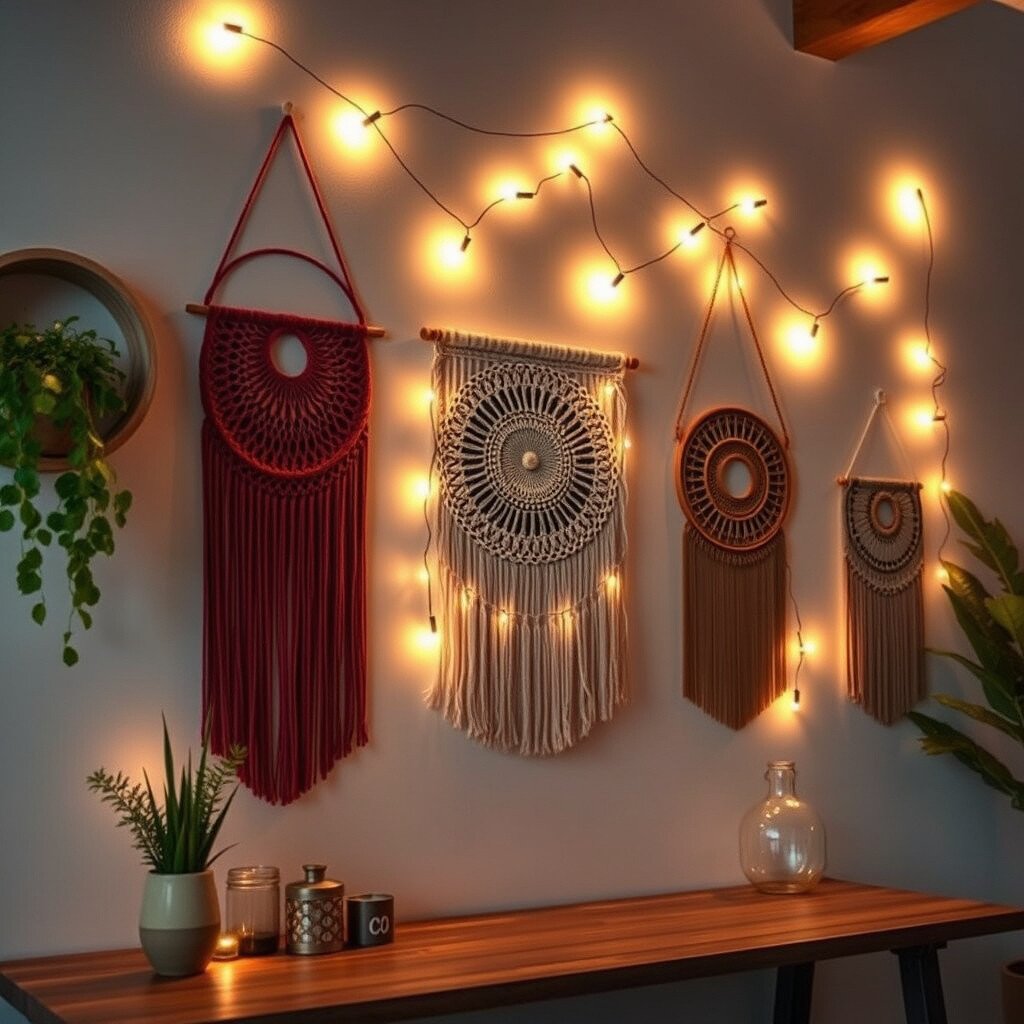 Combine string lights with bohemian elements like macrame or dream catchers. This creates an eclectic, cozy vibe.