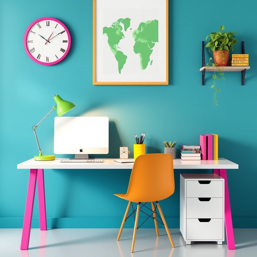 Brighten up your study sessions with a splash of color. Choose a vibrant desk or add colorful accessories, like a rainbow lamp or bold organizers.