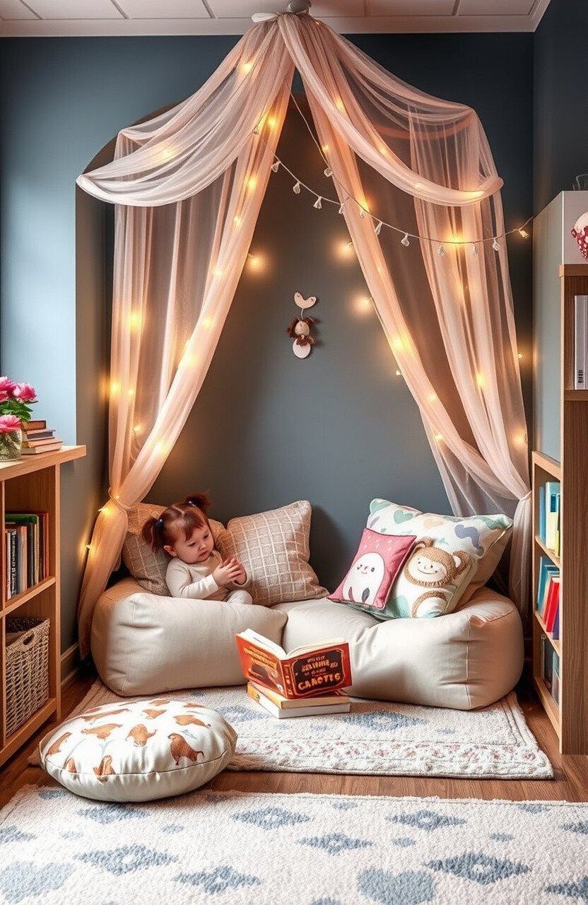 A cozy reading nook invites children to dive into books. It’s a special spot that makes reading feel like an adventure.
