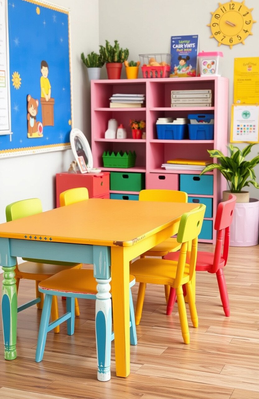 Painted furniture adds a pop of color. It makes the classroom feel vibrant and lively.