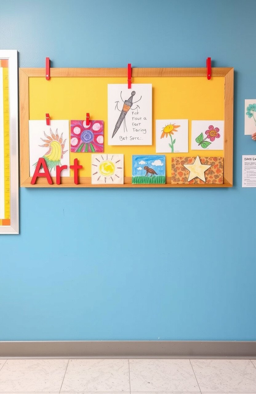Use a designated wall or bulletin board. Rotate art pieces to highlight different students.