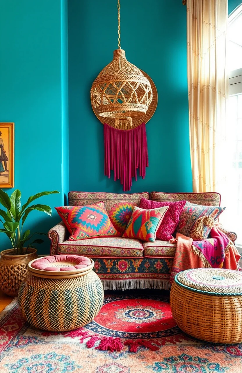 Use vibrant colors and various patterns for a bohemian feel. Layered rugs and textiles add warmth and interest.