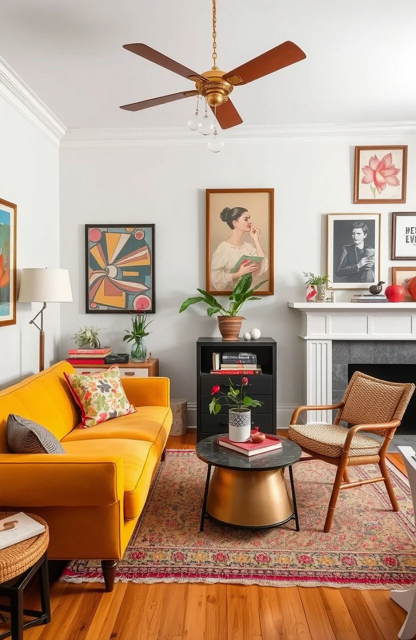 Use bright colors and retro patterns for a retro feel. Vintage furniture and quirky decor add interest.