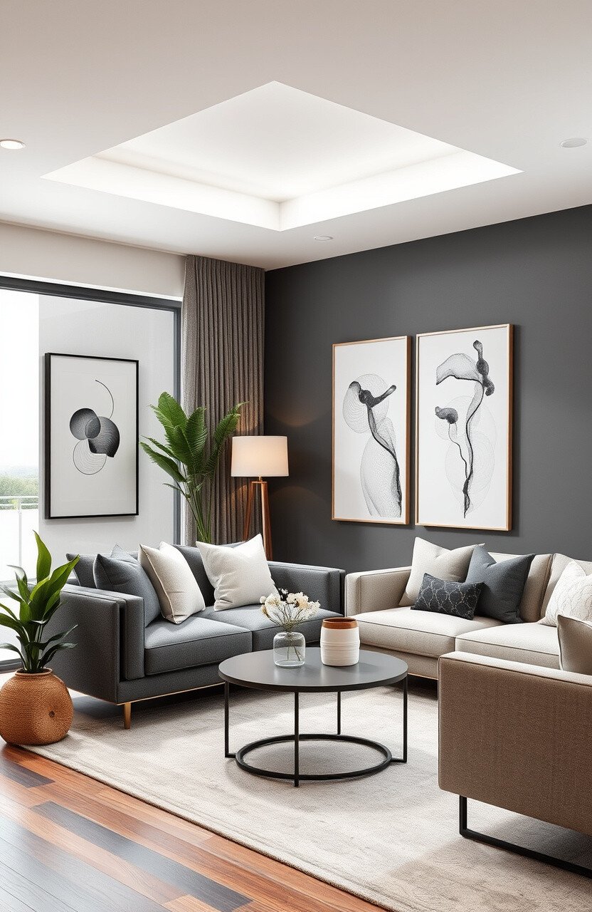 Use neutral colors and simple furniture for a contemporary feel. Artwork and decor should be minimal but impactful.