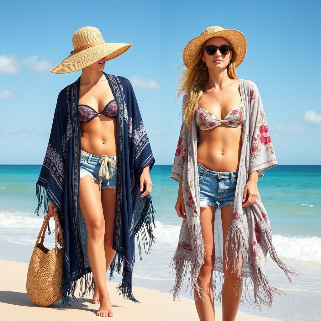 Kimonos add a bohemian flair to any outfit. They’re perfect for layering over a swimsuit or a simple dress. Choose ones with fringes or embroidery for added style.
