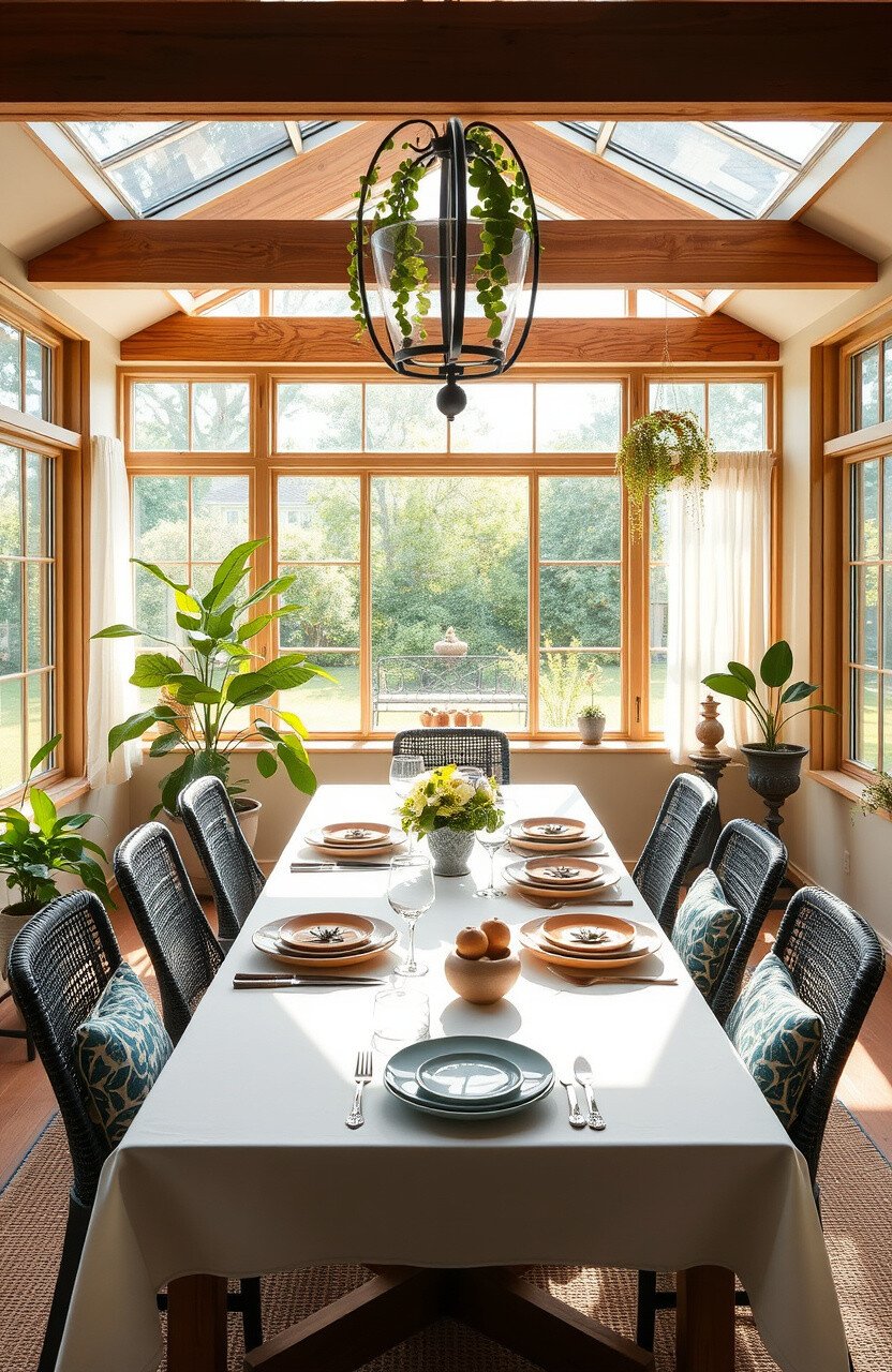 Transform your sunroom into a dining paradise. Use a long table to accommodate family and friends.