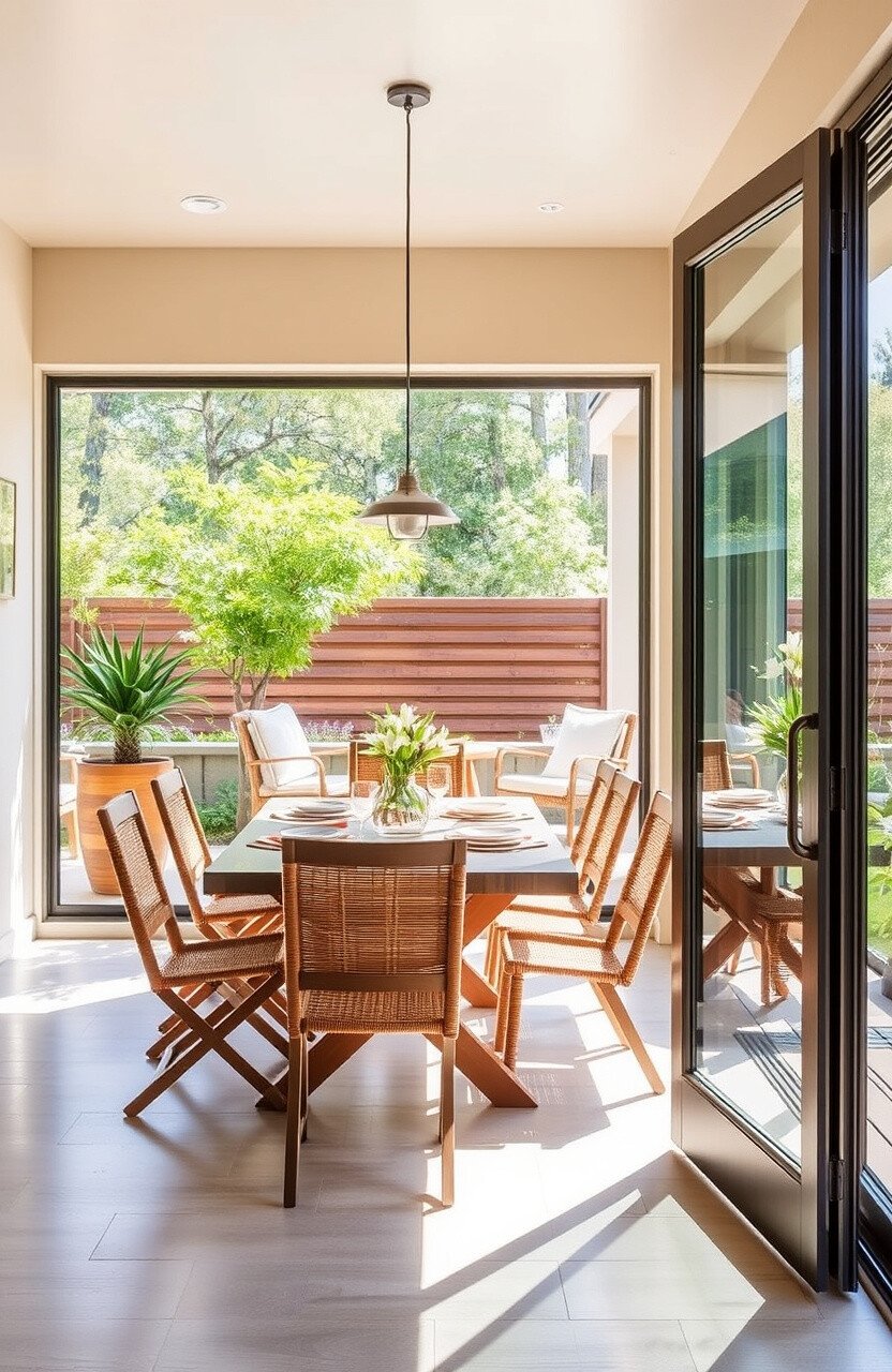 Blend indoor and outdoor dining areas with sliding glass doors. This creates a seamless transition between spaces.