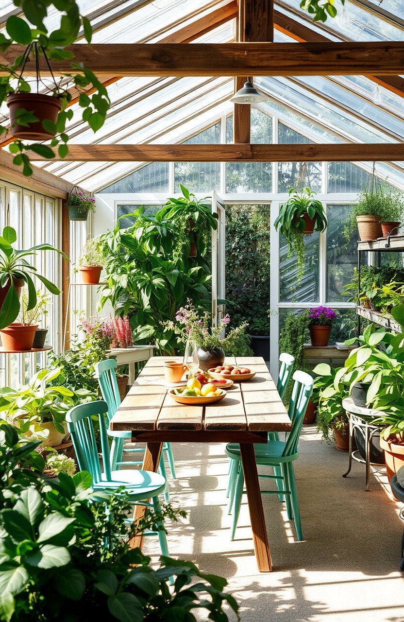 Turn your greenhouse into a dining space. Enjoy meals surrounded by plants and sunlight.