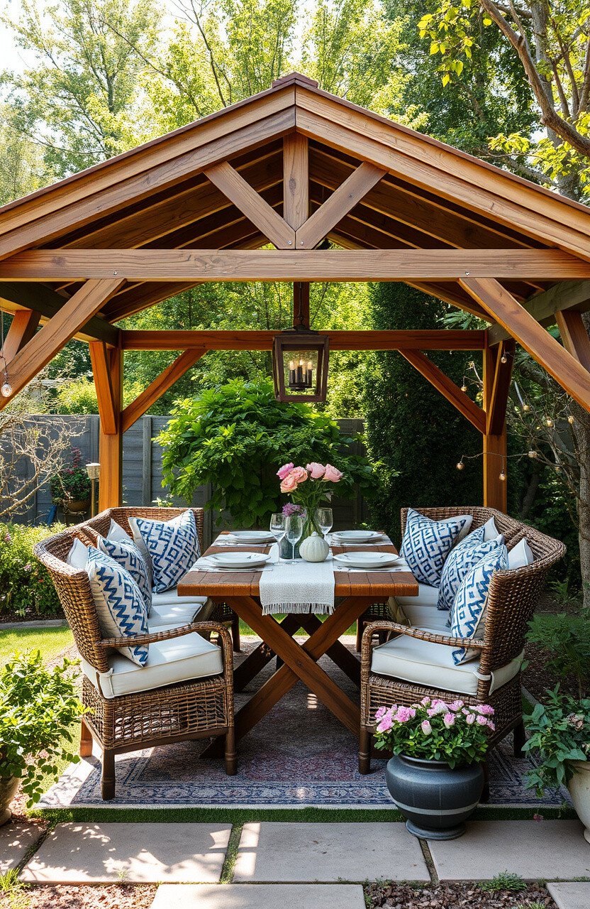 Create a dining pavilion in your garden. Use a gazebo or pergola for a sheltered eating spot.