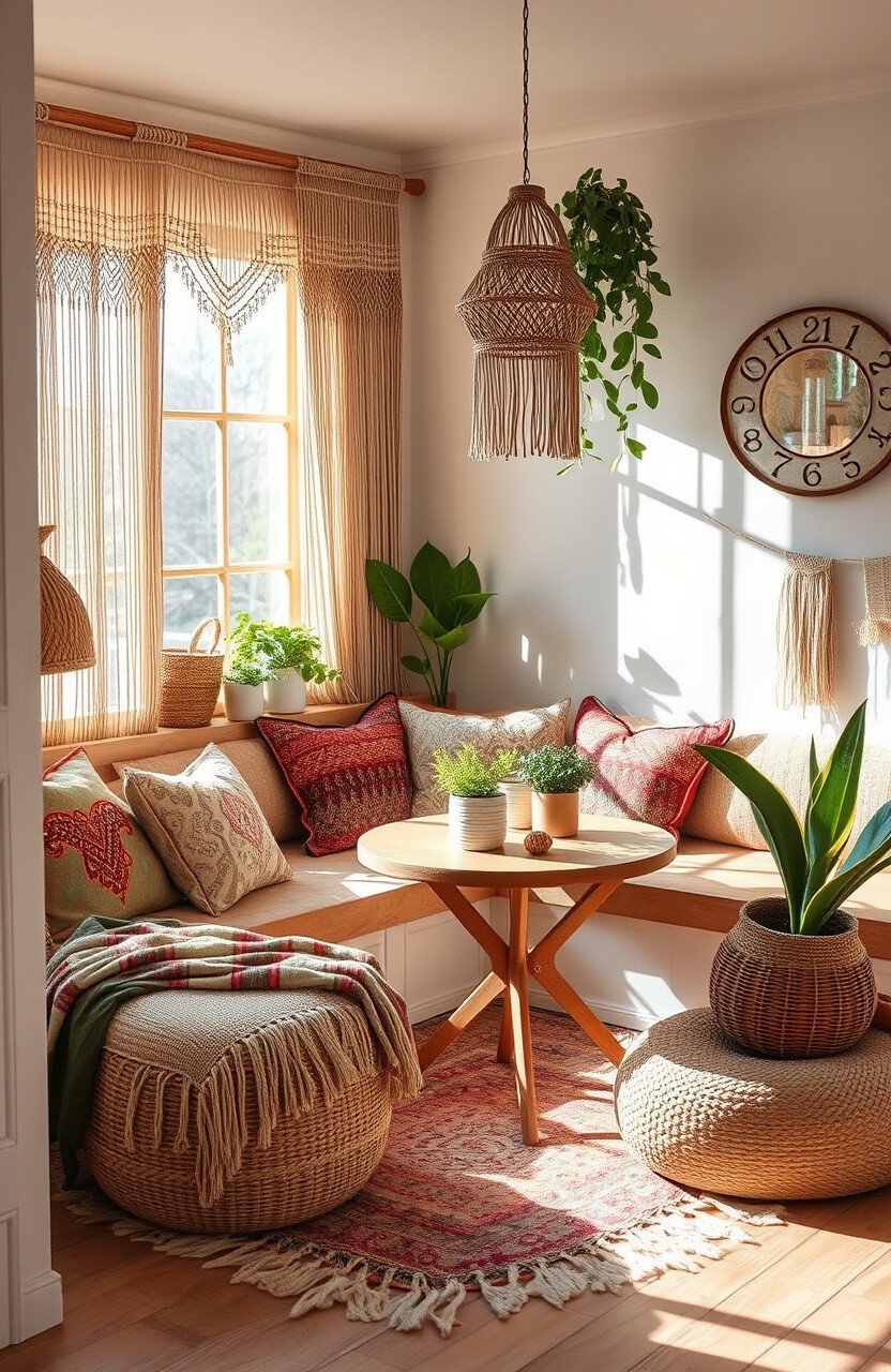 Boho style can be budget-friendly with DIY options. It’s a nook where you can truly unwind and enjoy breakfast.