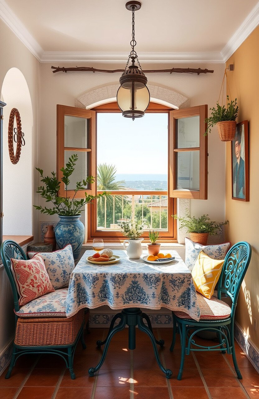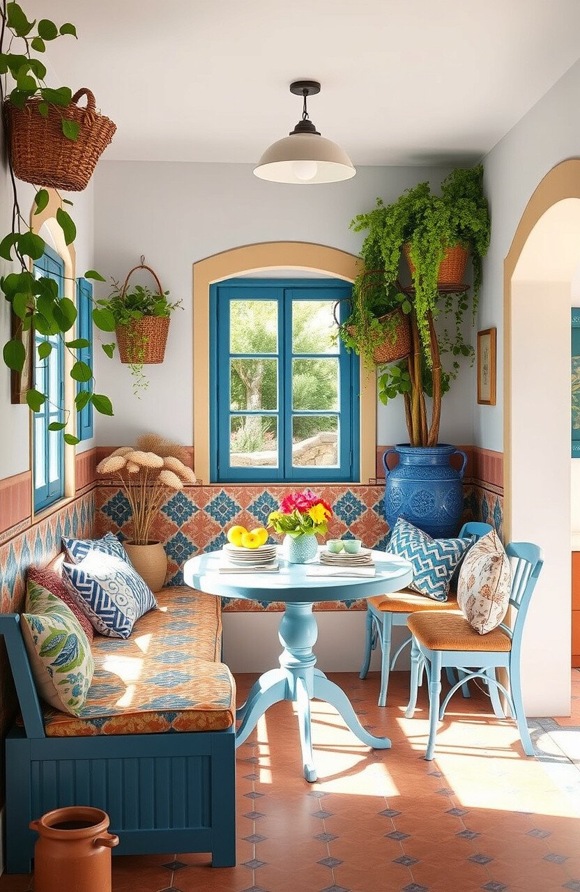 A Mediterranean-themed nook is warm and vibrant. It’s a space that feels like a sunny escape.