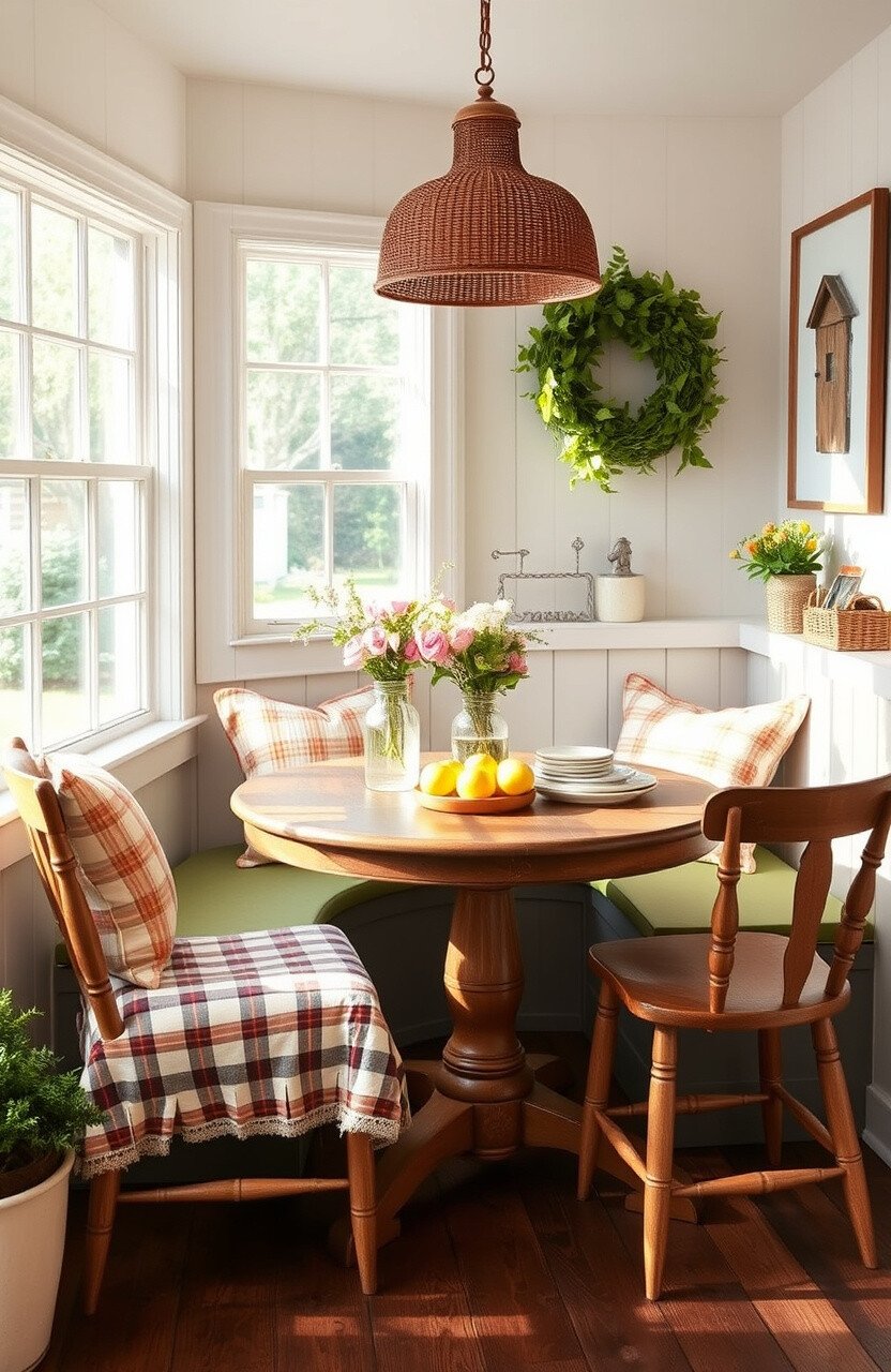 Farmhouse style is warm, welcoming, and full of charm. A nook with this theme feels like a hug from home.