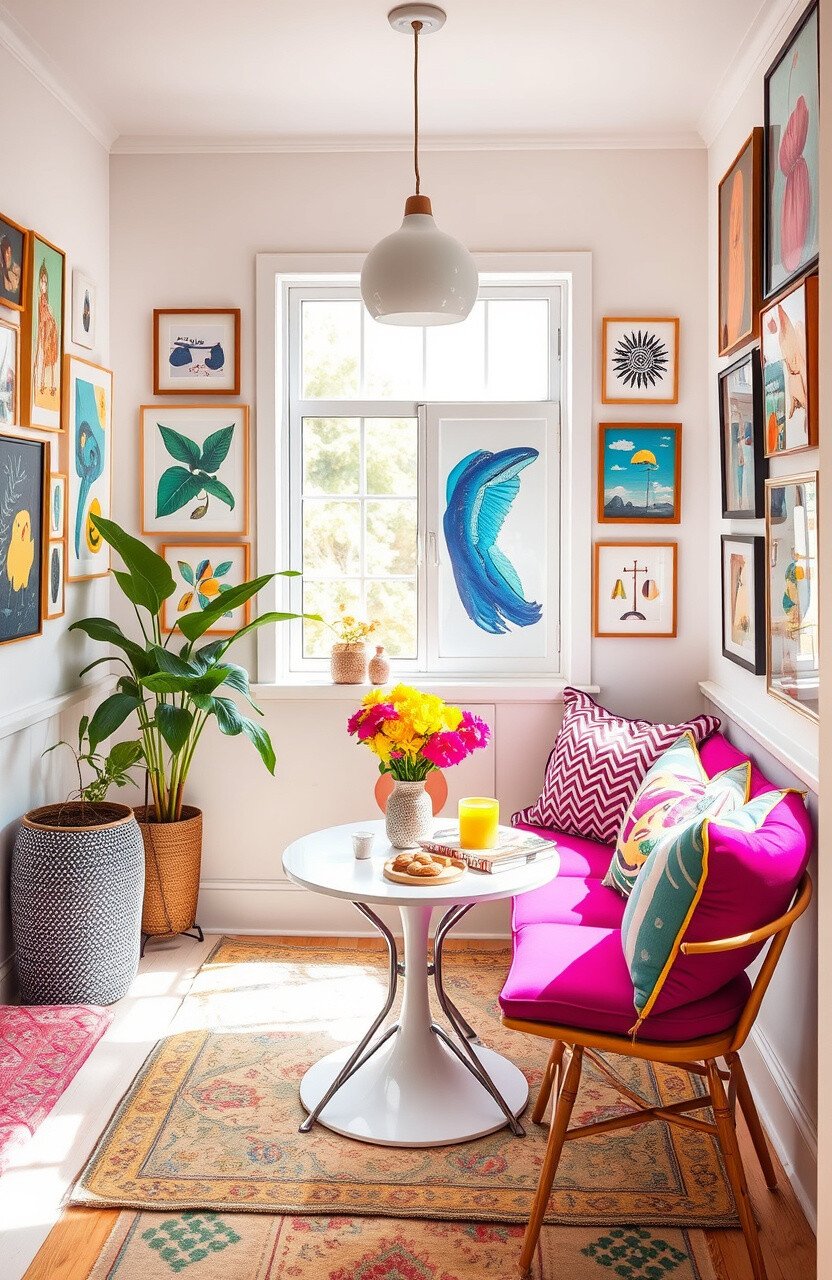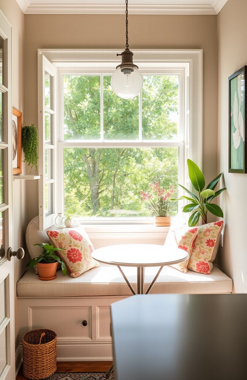 Look for affordable decor to keep costs manageable. This nook is perfect for those who love a bright, cheerful space.