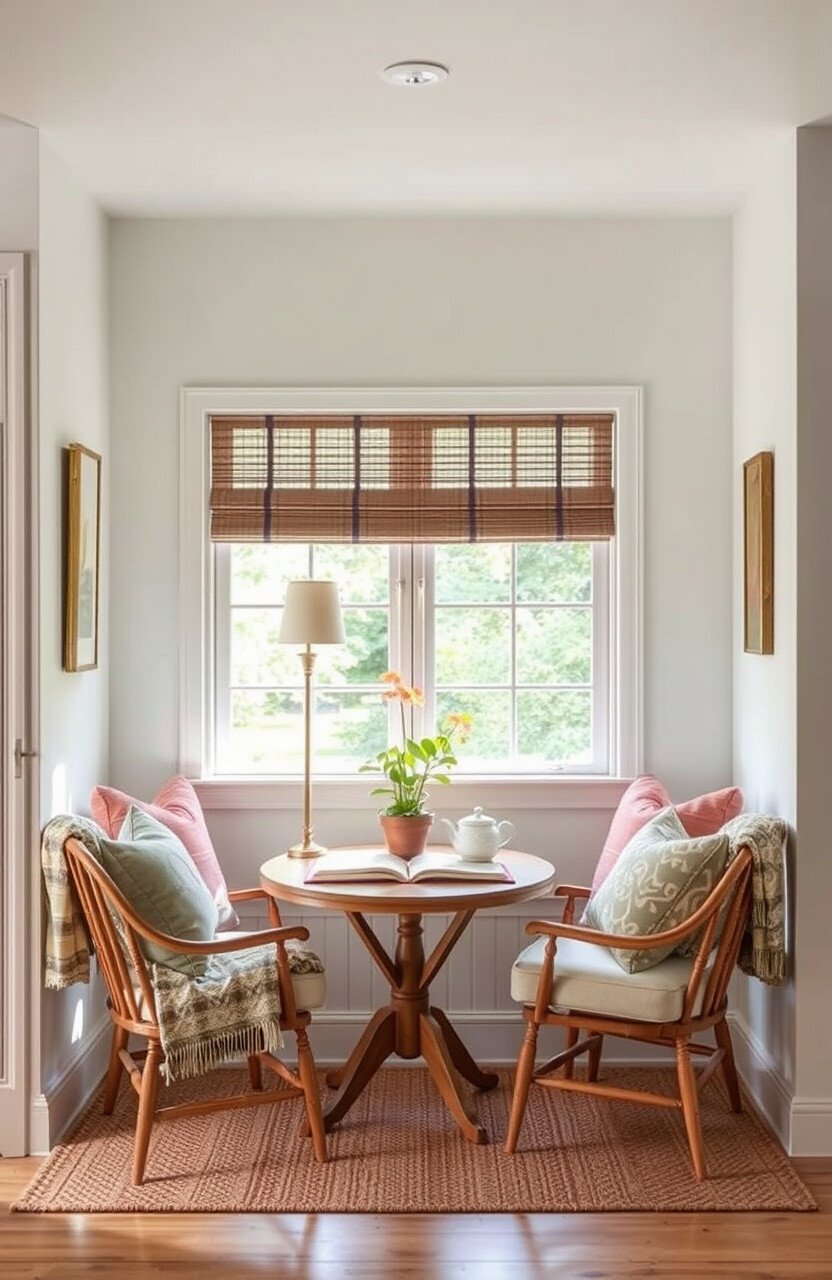 It’s cost-effective, especially if you thrift or repurpose items. This nook invites you to slow down and enjoy your breakfast.