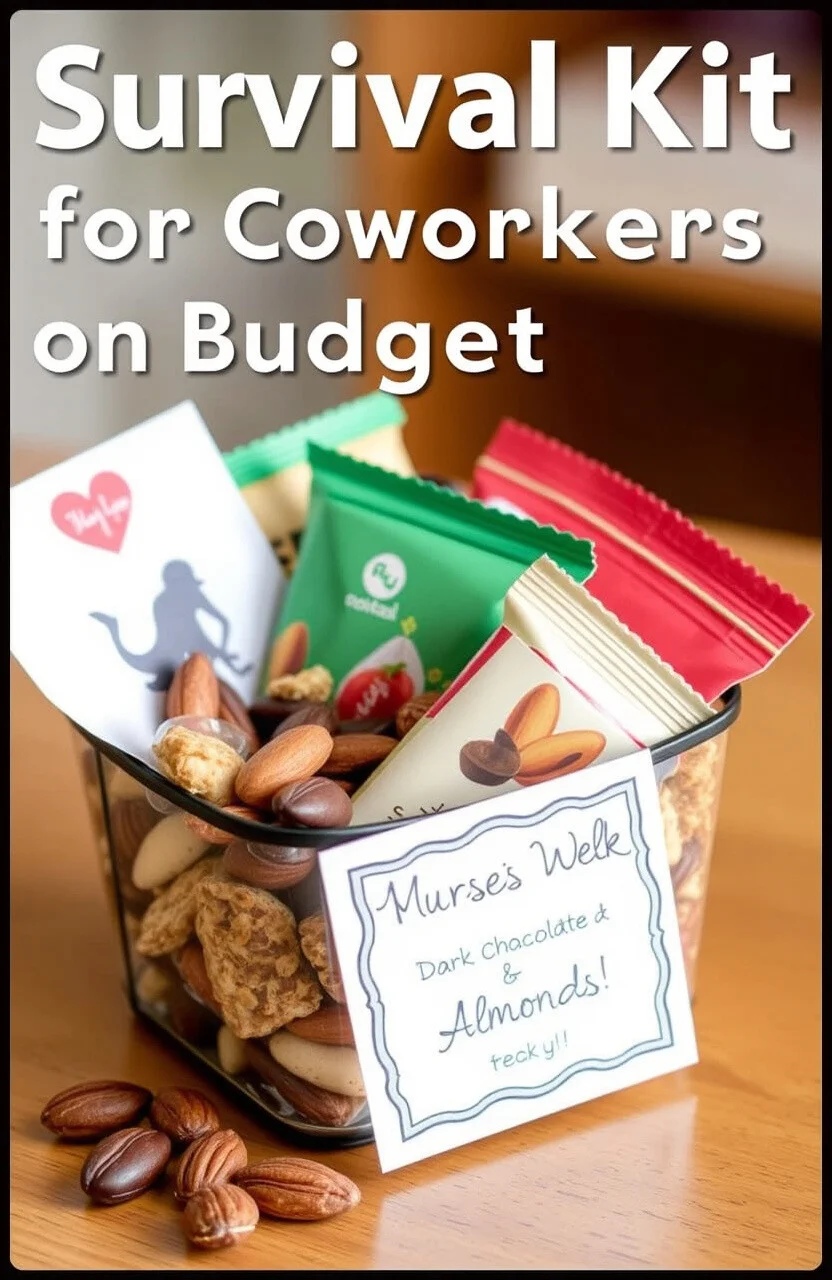 Add a personalized note to make it extra special. Choose snacks that are healthy yet tasty, like dark chocolate-covered almonds. The cost is friendly, making it a thoughtful yet affordable choice.
